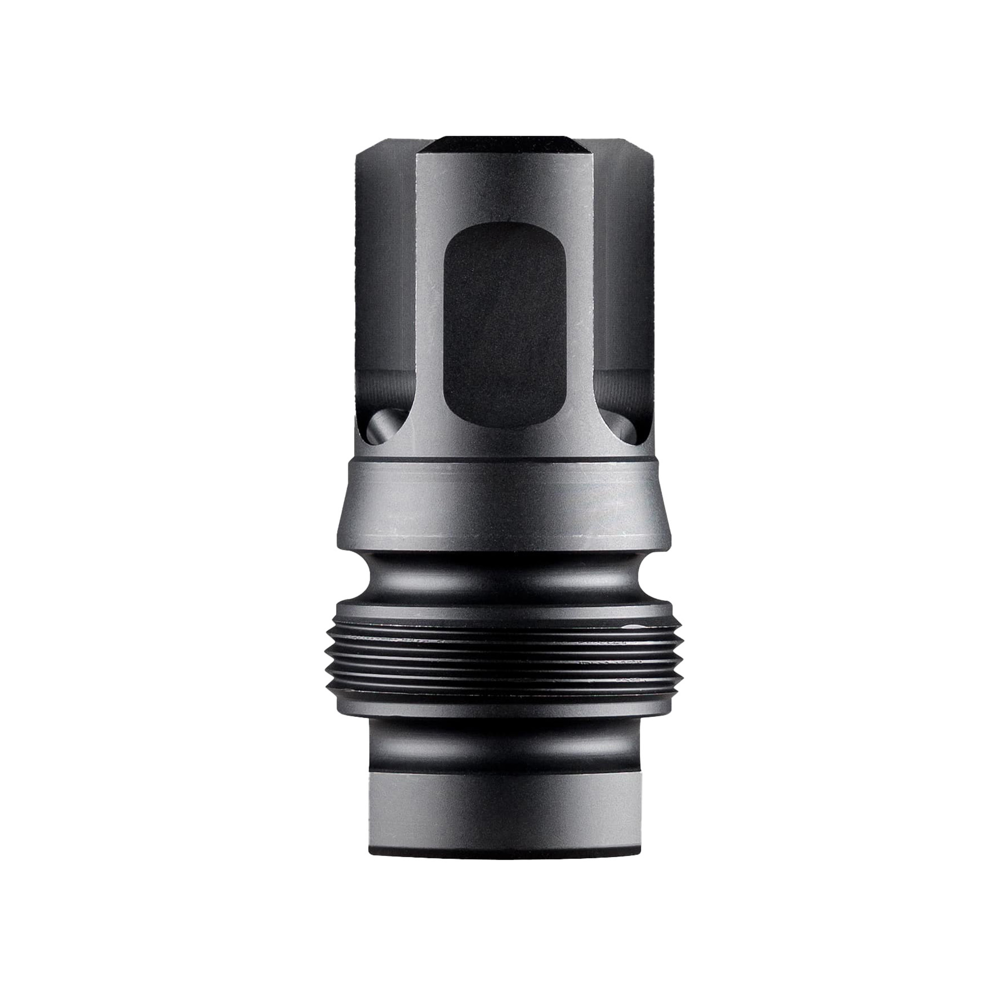 The Xeno 3-Prong Micro Flash Hider gives a short, lightweight suppressor mounting option with non-negotiable repeatability and a solid return to zero ideal for precision-minded shooters. Even on short barrels with flashy ammo, the Xeno 3-Prong Micro Flash Hider is tuned specifically to .223 sized bullets and easily tames muzzle flash prevalent in this caliber. The Xeno Flash Hider and Adapter mate together with left-handed threads, eliminating worries of the adapter unthreading from silencers when removed. The material of choice is nitrided 4140 steel for hardness and corrosion resistance.