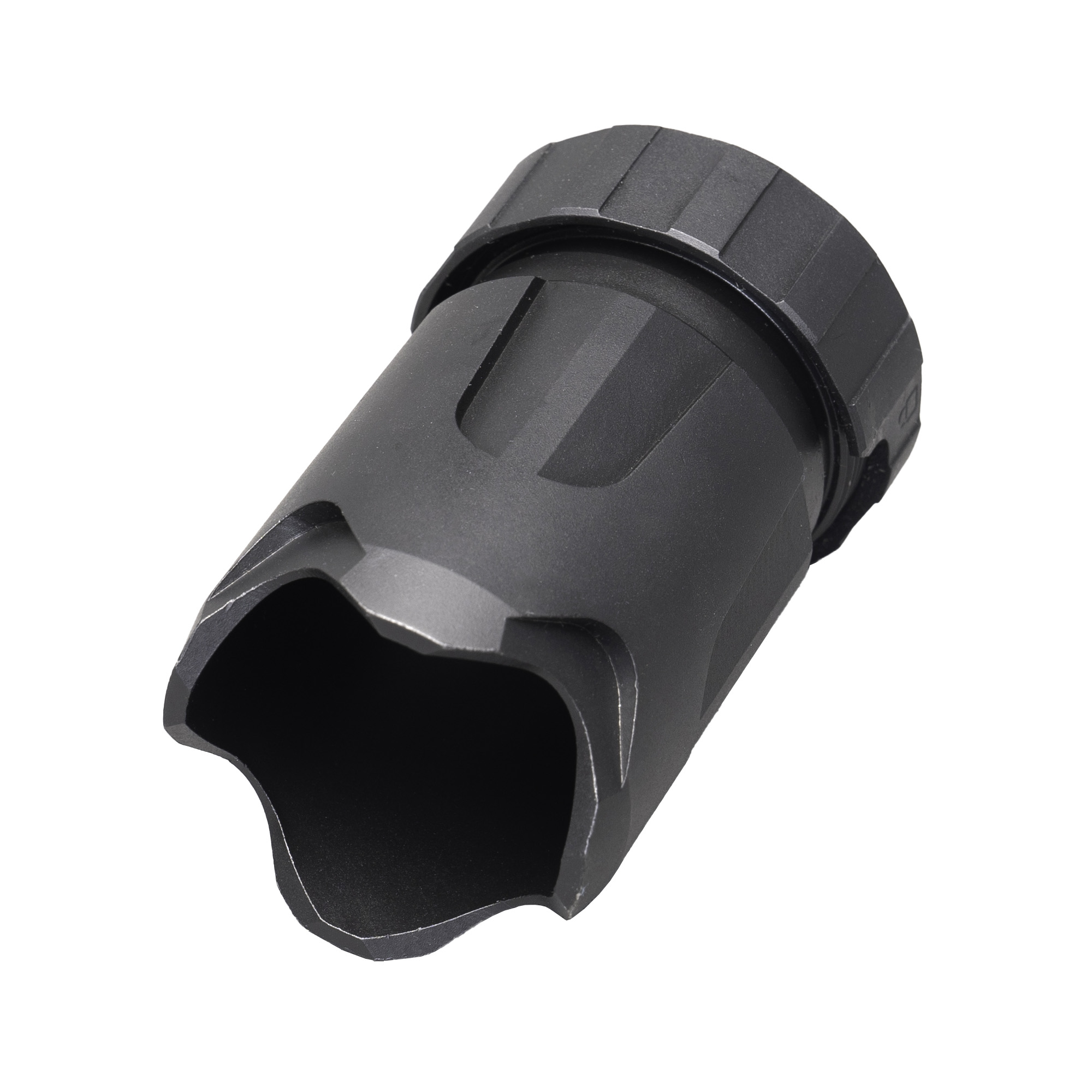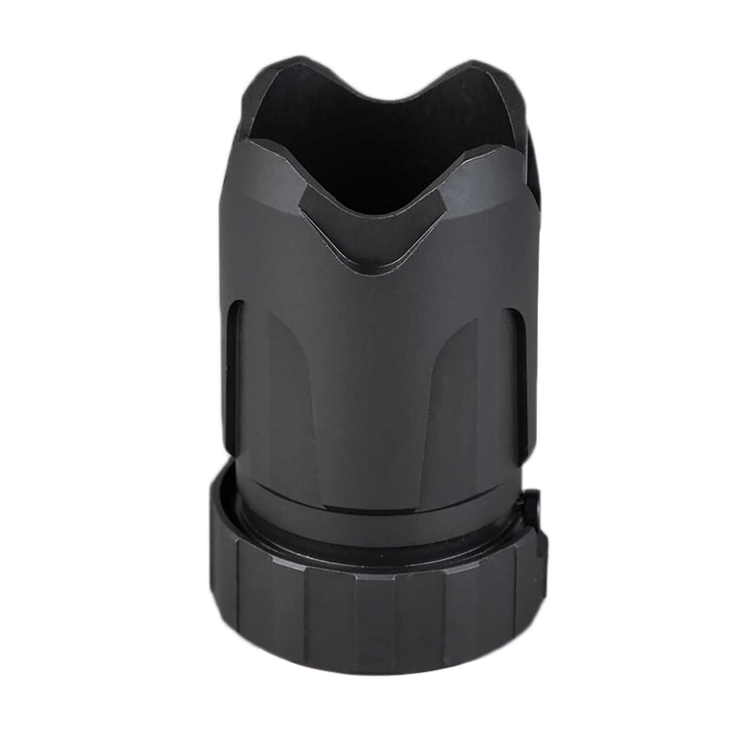 The SilencerCo Blast Shield is constructed of steel with a black finish. The SilencerCo ASR Blast Shield attaches to any existing ASR Muzzle Device including the Single Port ASR Muzzle Brake. The ASR Blast Shield reduces muzzle blast and concussion, and requires an ASR Muzzle Device to mount to the host firearm.
