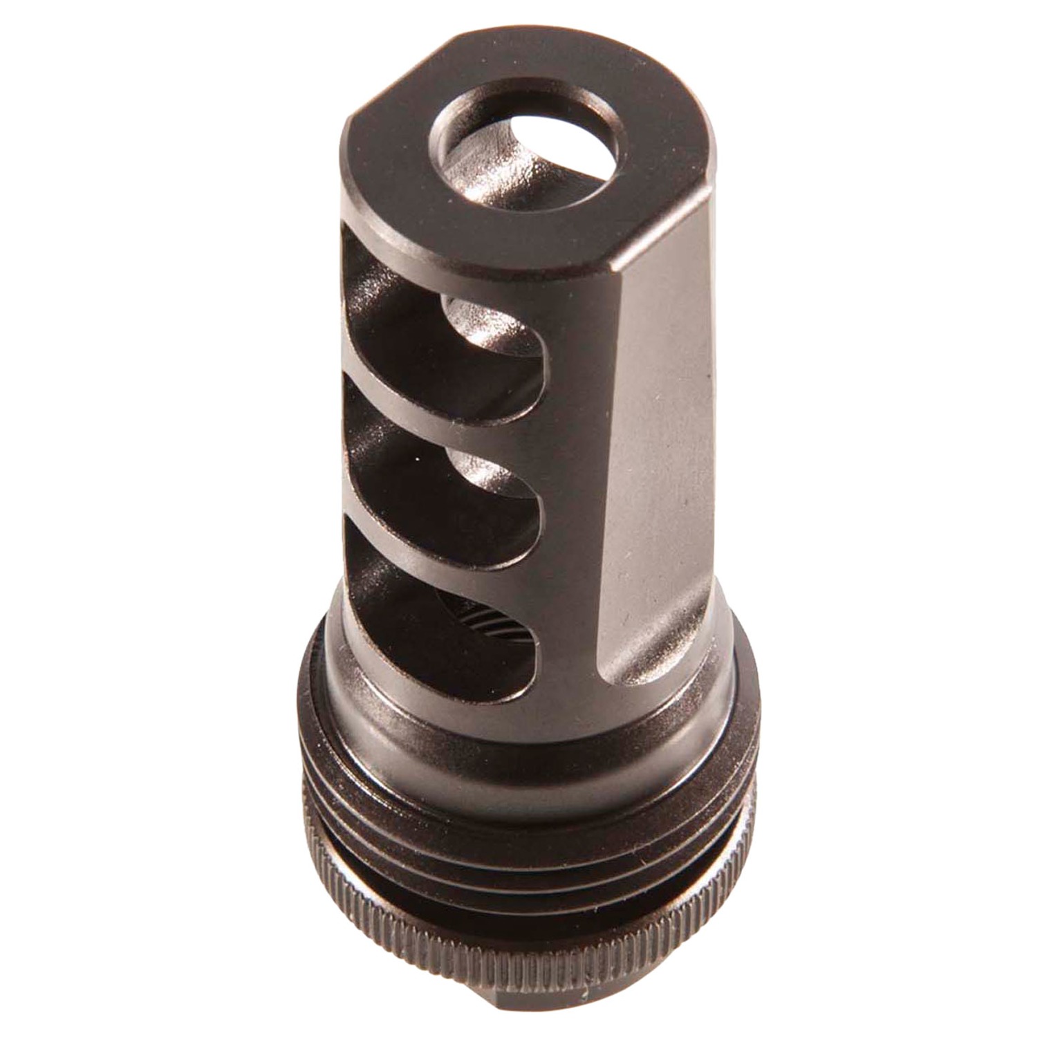 This 3-port muzzle brake is compatible with all SilencerCo ASR Mounts. It offers quick and easy one-hand-on, one-hand-off attachment and detachment. The 3-port design effectively reduces felt recoil and muzzle climb. Each ASR muzzle brake comes with a shim set and rocksett for easy application.