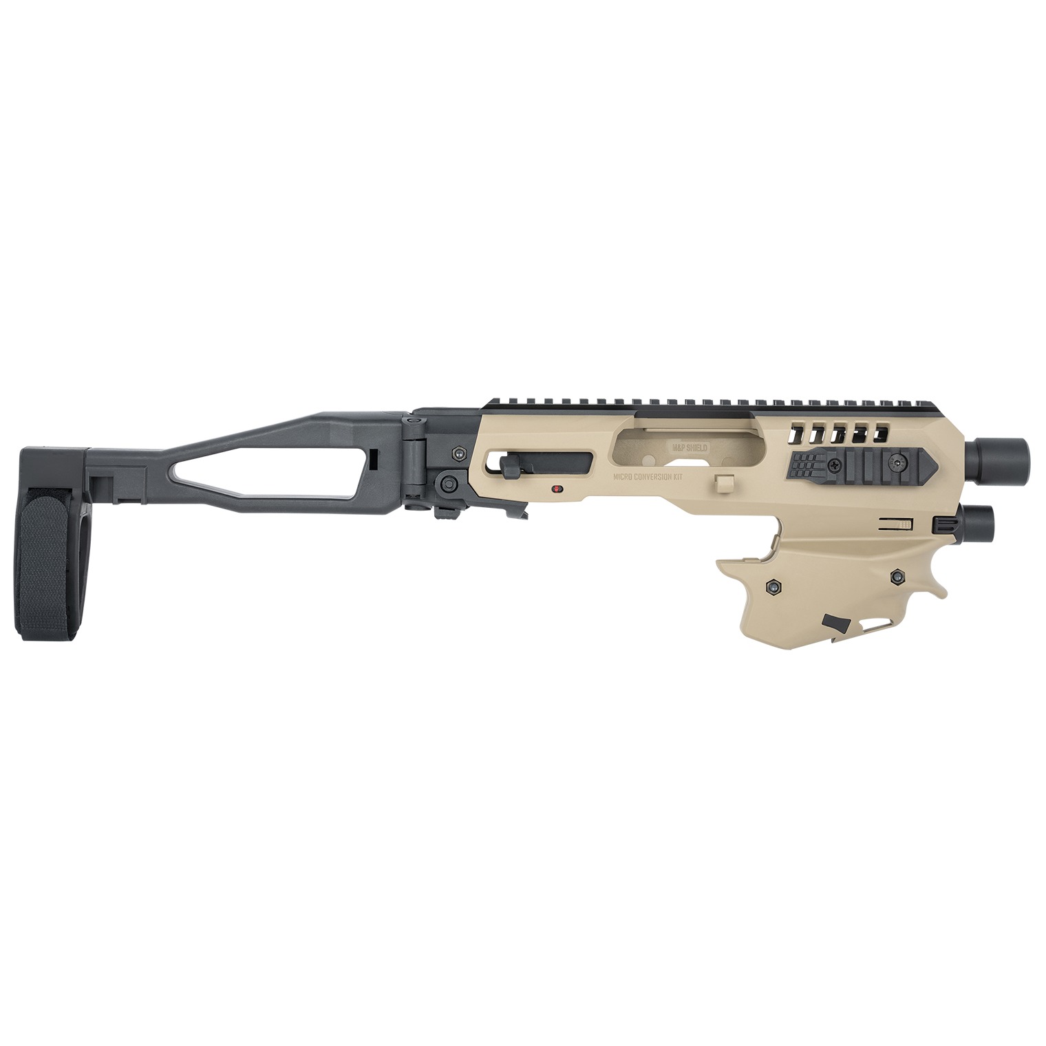 The Micro Conversion Kit for the M&P Shield is the thinnest MCK we have ever produced due to the slim nature of the handgun itself. Featuring key advantages from our popular Gen2 platform, the MCKSHIELD will come standard with a Gen2 stabilizer, an aluminum top Picatinny rail and a magazine button catch/release for stronger retention on the extra mag holder of the MCK.