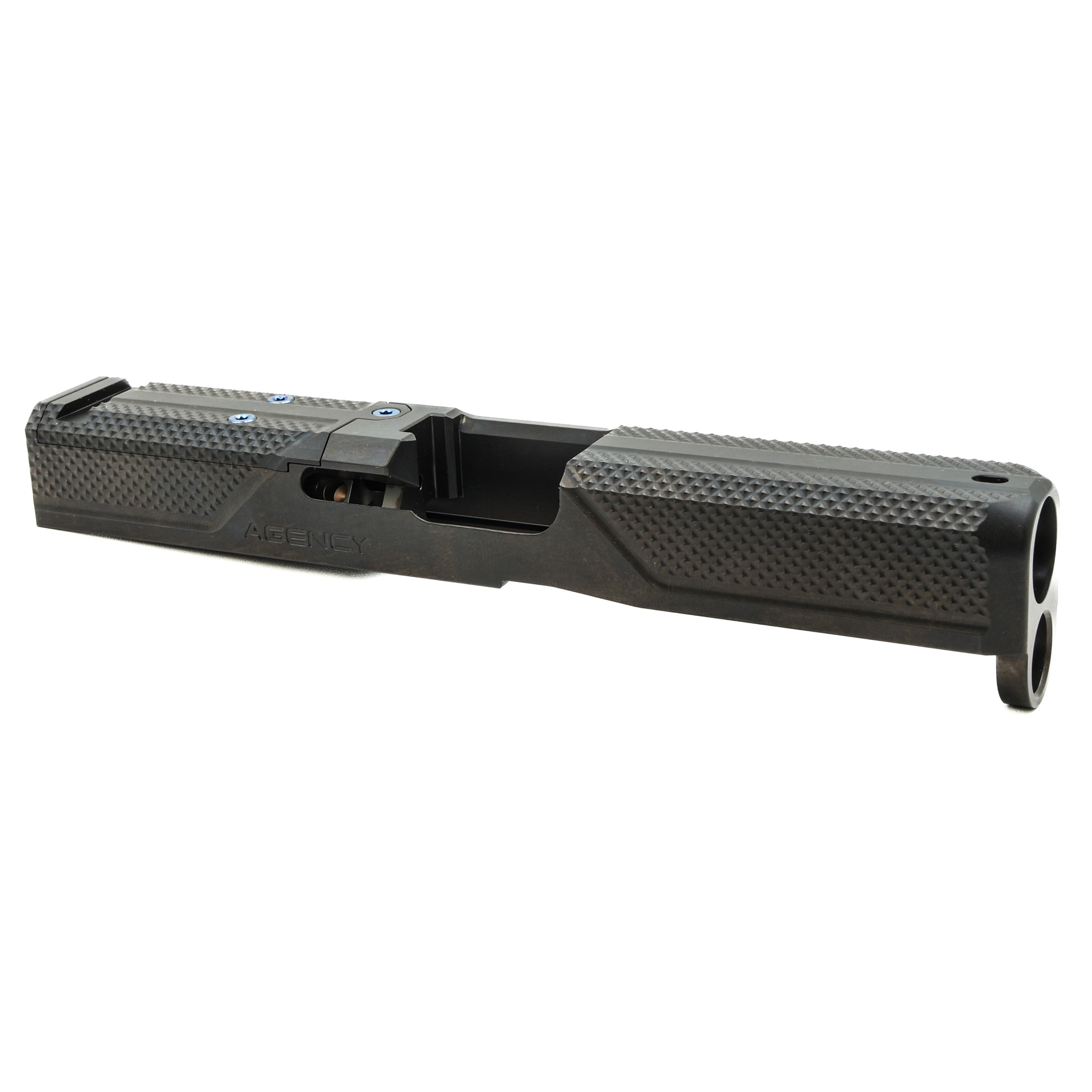 Agency Arms, Syndicate S2, Stripped Slide, Optics Ready, Front and Rear Knurling, Diamond Like Carbon Coating, Black, Fits Glock 19 Gen5