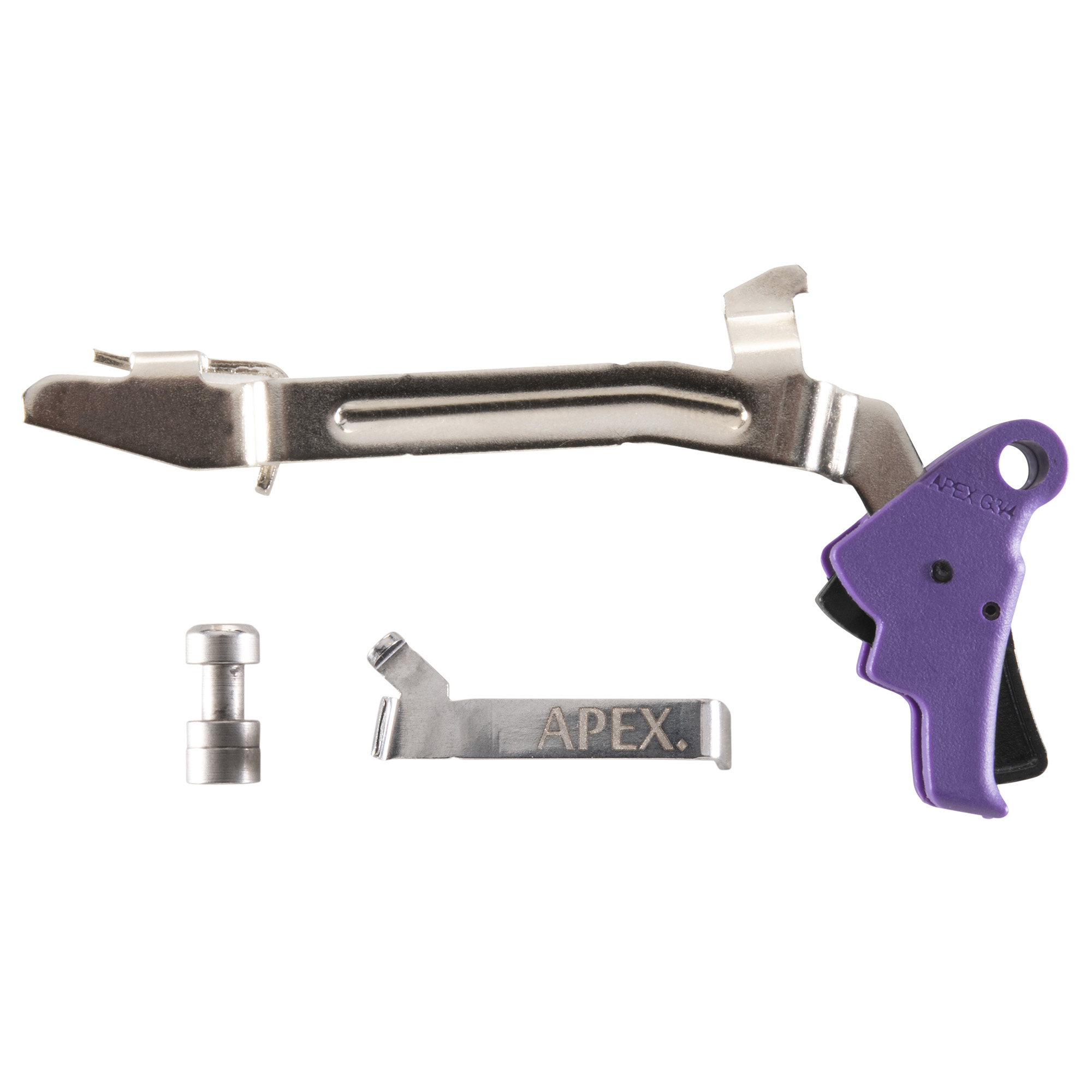 A must for any Glock owner the Action Enhancement Kit features the Apex Polymer Action Enhancement Trigger with a Gen 3 trigger bar, an Apex Ultimate Safety Plunger and an Apex Performance Connector. Direct drop-in replacement parts, no fitting required. These drop-in parts will reduce trigger pull weight by approximately one pound; reduce trigger pre-travel, overall travel and reset distance; smooth uptake and reset; crisp trigger break; center mounted pivoting safety maintains factory safety values. Compatible with the following Gen3 and Gen4 Glock model pistols- G17/17L/19/22/23/24/26/27/31/32/33/34/35. *Does not fit- the 10mm, .45 ACP or .45 GAP caliber Glock models. Not for use in Gen 5 models. **Trigger bar finish may vary- Matte Nickel or Bright Nickel finish.
