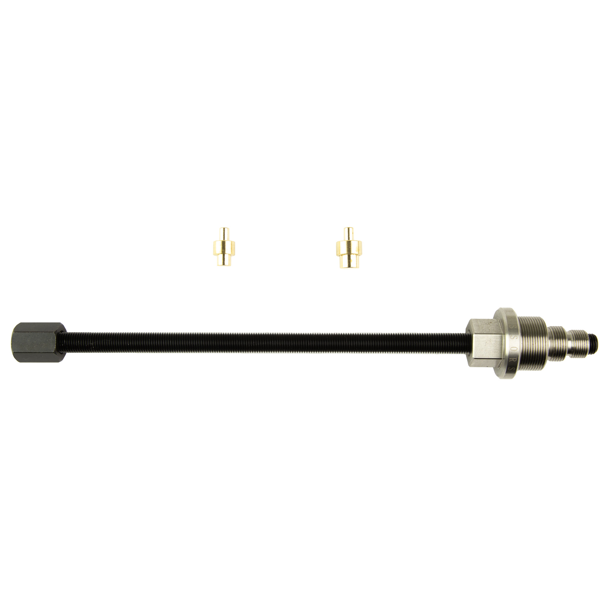 The Silencer Central Baffle Removal Tool allows users to safely disassemble a dirty user-serviceable silencer. The Baffle Removal Tool features corrosion resistant finished alloy steel construction and a piloted brass pusher tip (for .22, .23, .308 threads) to minimize contact wear on the baffles. The baffle removal tool can be used to disassemble any .308, .223, or .22 rimfire silencer that has a removable front-end cap and 5/8-24 TPI or 1/2-28 TPI threads.