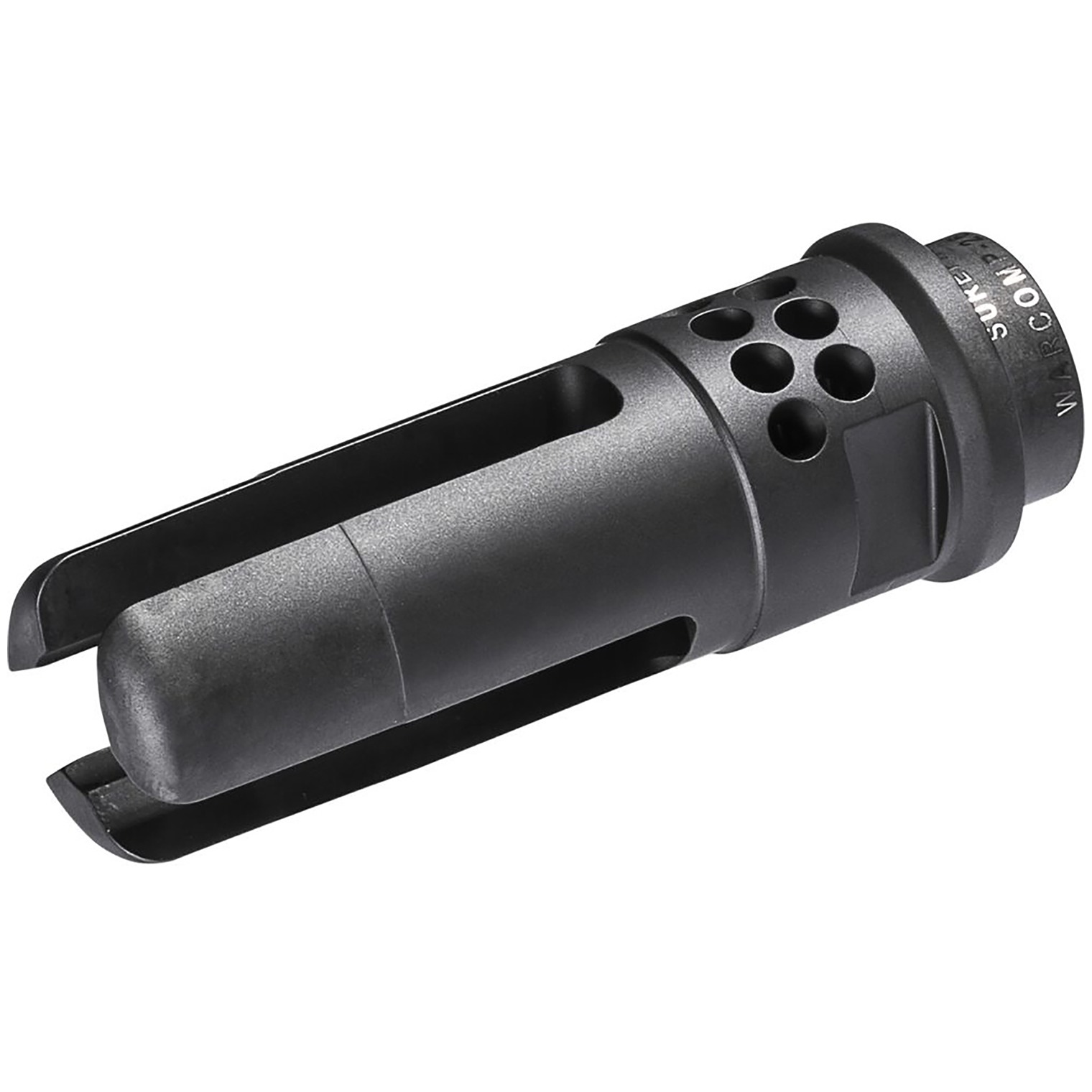 Proudly designed and manufactured in the U.S.A., The Warcomp 3-Prong Flash Hider features a patent-pending design provides more than 98% flash elimination & virtually eliminates muzzle rise. Multiple bearing surfaces provides suppressor alignment and prevent tines from ringing inside suppressor. It is precision machined from U.S. mill-certified, heat-treated stainless steel bar stock with high-precision single-point cut barrel threads and DLC coating for maximum protection against harsh environmental conditions. The Warcomp 3-Prong Flash Hider is ported and serves as a rock-solid mounting adapter for SureFire SOCOM suppressors. (suppressor is sold separately)