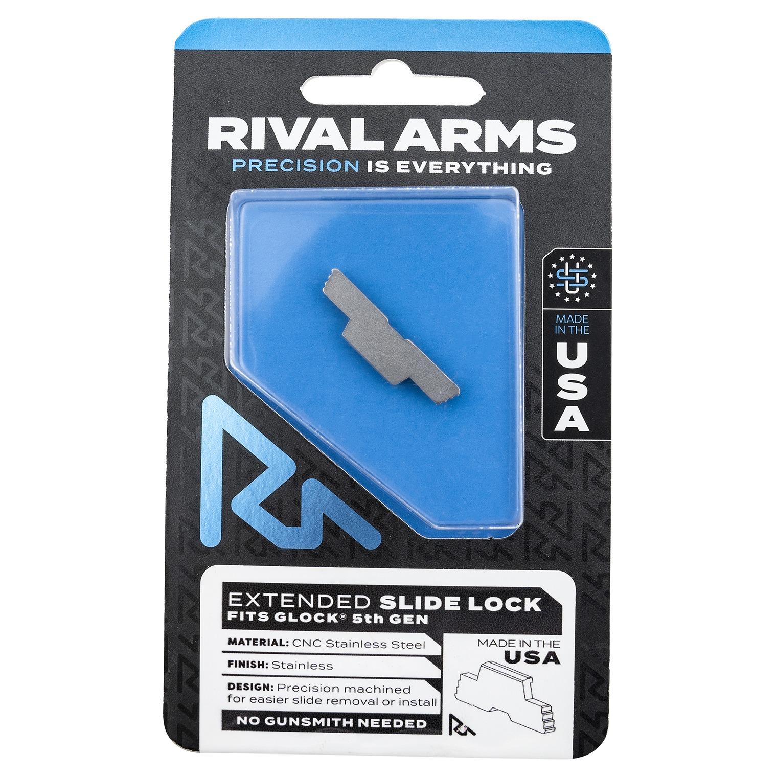 Rival Arms RARA80G002D Slide Lock Extended Polished Stainless for Glock 34/17/19 Gen5
