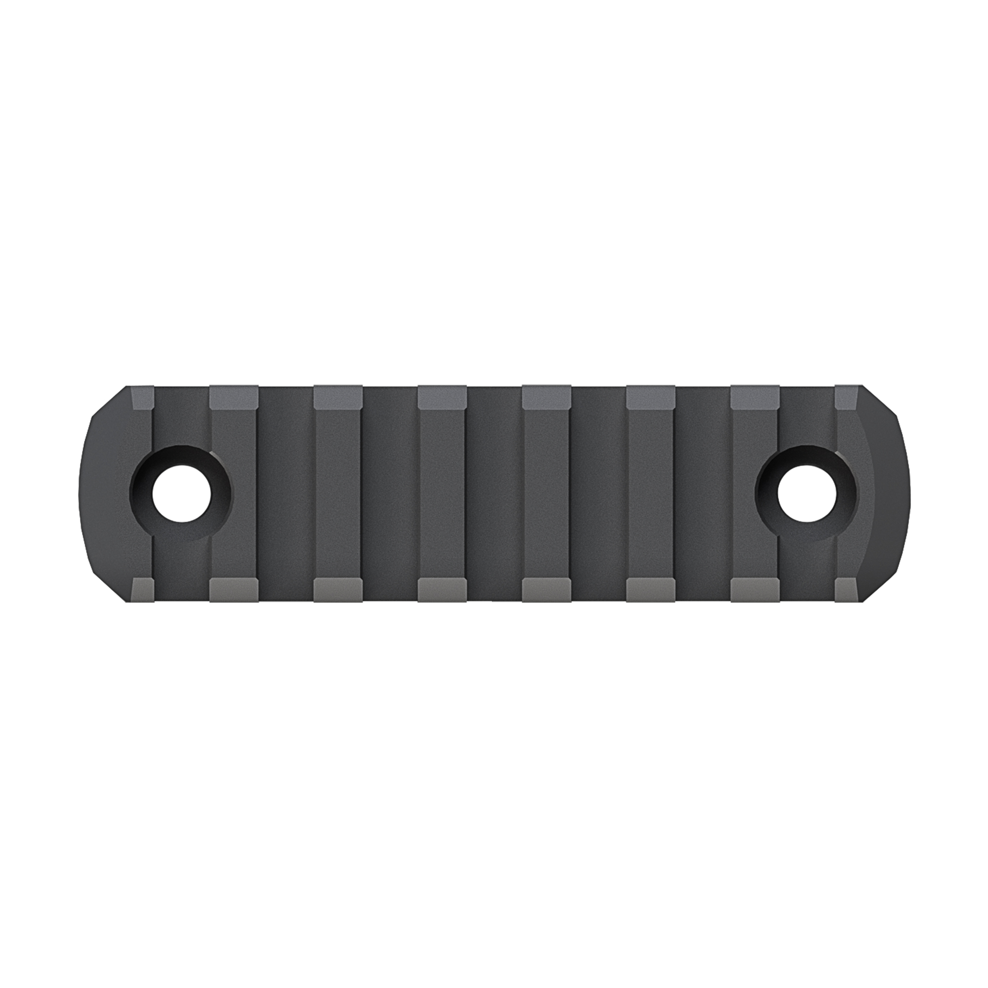 Designed for use with all M-LOK compatible Hand Guards and Forends, our M-LOK Aluminum Rail Sections (7 Slots) allow the attachment of various 1913 Picatinny spec rail-mounted accessories such as lights, vertical grips, etc. Machined from Mil-Spec-anodized aluminum, M-LOK Rail Sections also feature beveled ends to reduce snagging and eliminate sharp corners and edges. All hardware necessary for attachment directly to M-LOK Slots on either aluminum or polymer hand guards and forends is included.