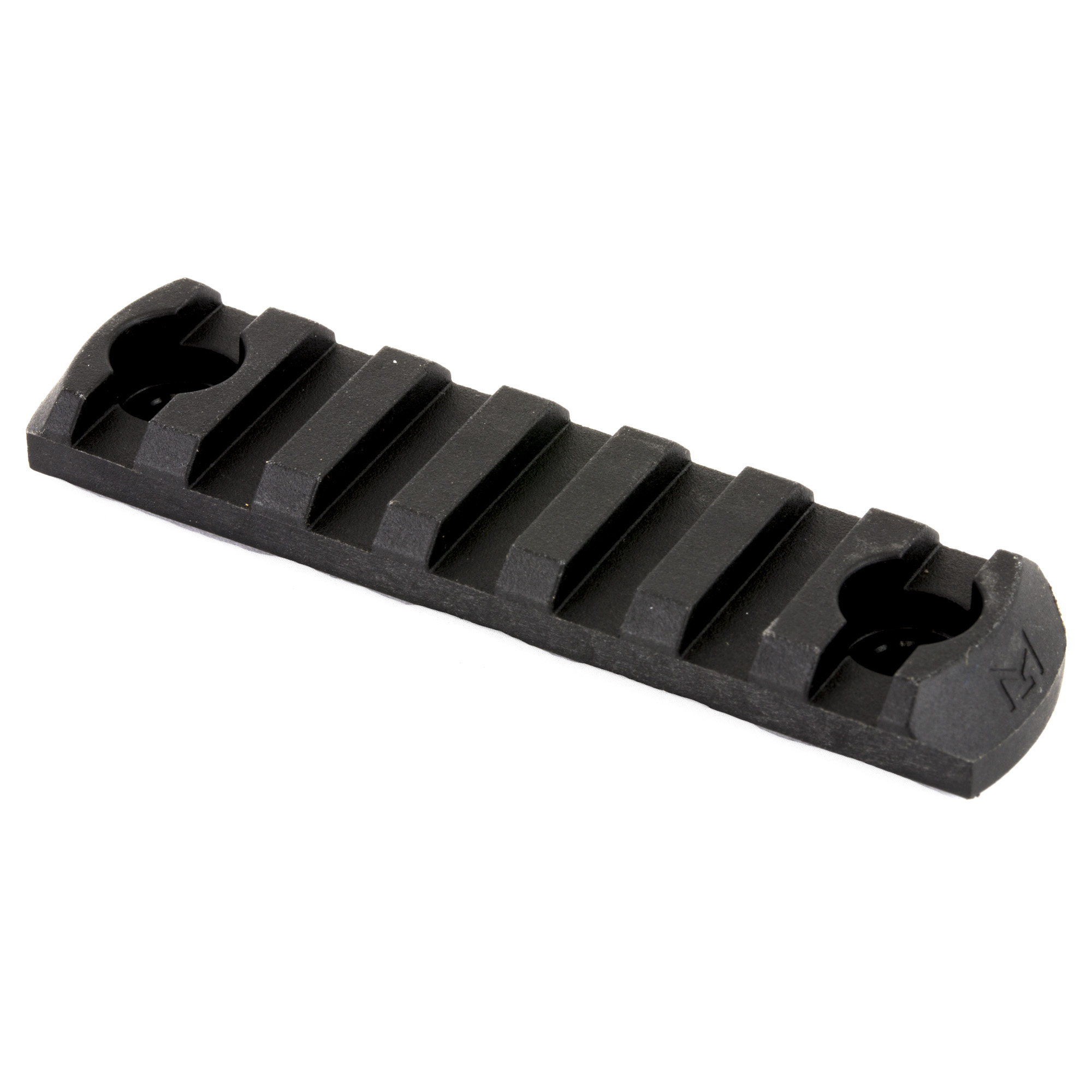 Designed for use with all M-LOK compatible Hand Guards and Forends, M-LOK Polymer Rail Sections provide a cost effective method of attaching various 1913 Picatinny spec rail-mounted accessories such as lights and vertical grips. Injection molded from a proprietary reinforced composite for enhanced strength and durability, our M-LOK Polymer Rail Sections are light weight and feature beveled ends to reduce snagging and eliminate sharp corners and edges. Includes all hardware necessary for attachment directly to M-LOK Slots on either aluminum or polymer hand guards and forends.