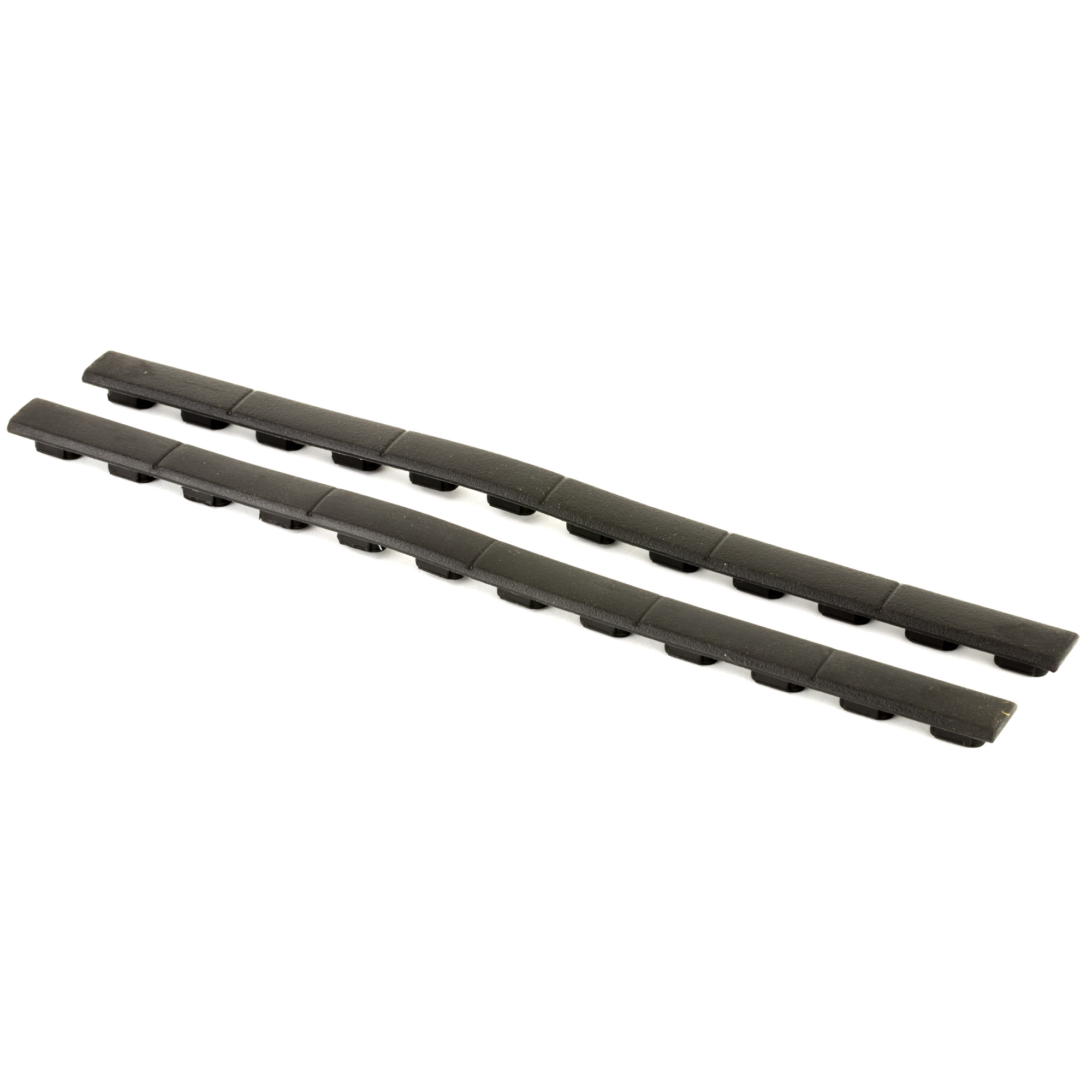 M-LOK Type 1 Rail Covers are low-profile and light weight covers that install directly onto M-LOK compatible systems. Made of an extremely heat resistant flexible material, these covers offer an enhanced gripping surface. At 9.5 in length, they cover six full M-LOK slots but can be cut for customized length or to combine colors. Includes two Covers per package.