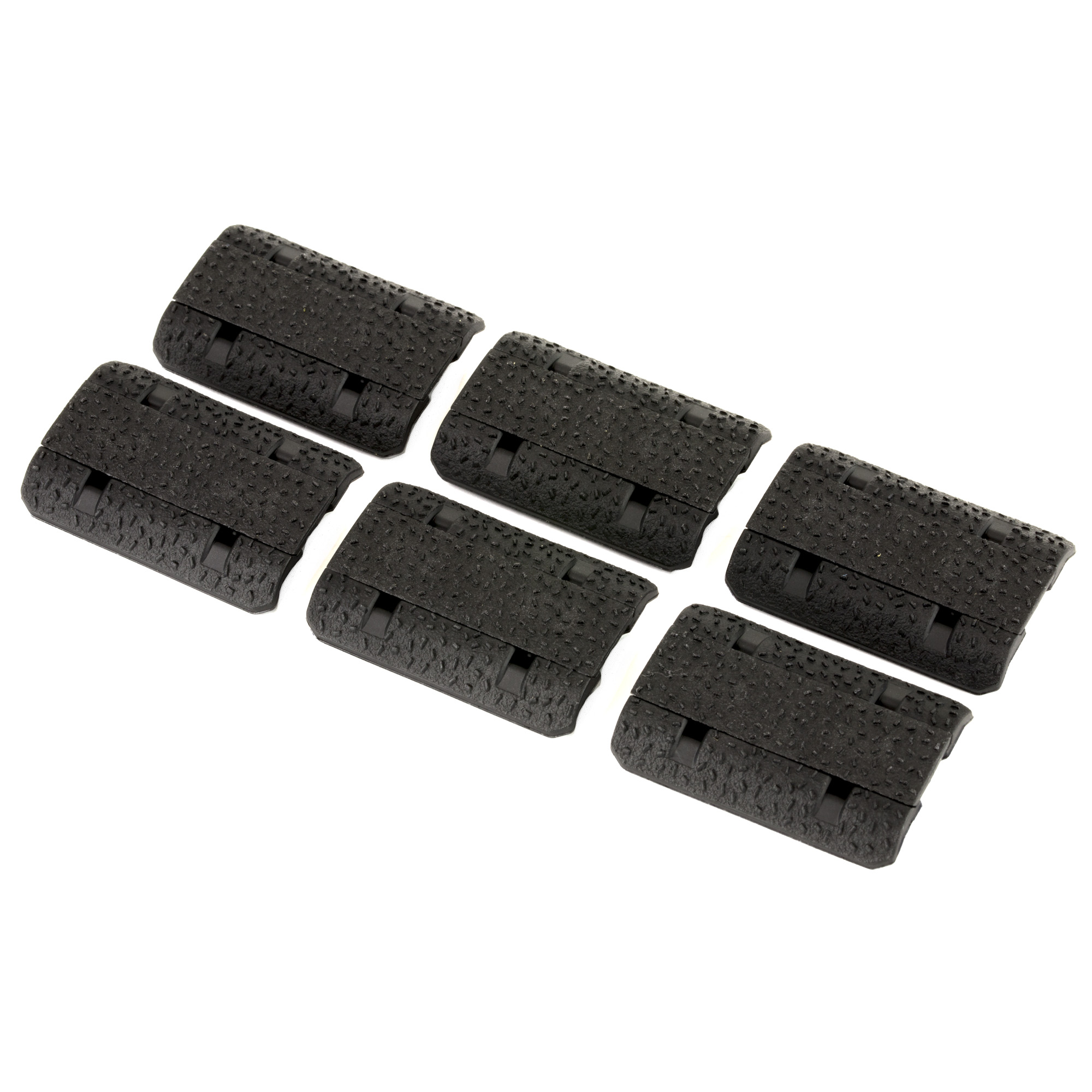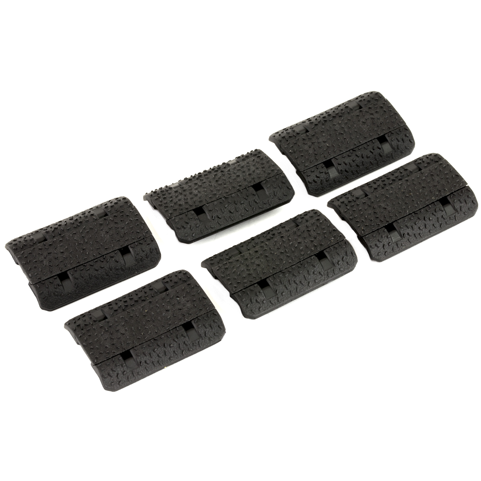 M-LOK Type 2 Rail Covers are low-profile, two-piece covers that install directly onto most M-LOK aluminum hand guards (non-polymer). This pack of six M-LOK covers is non-orientation specific, which allows the user to mount them in any direction desired without affecting function. Not compatible with MAGPUL MOE M-LOK, MOE SL and SGA forends, and may not be compatible with free-float hand guards that have a wider and flatter profile, as they will not seat deep enough to allow the center portion to lock in. Featuring beveled contours to minimize potential snagging, our TSP texture for additional grip, and with a protrusion only slightly more than 1/8” from the mounting surface to maintain its low-profile. The center locking tab is pre-scored to allow the user to snap off sections and mix and match colors for a customized look. Includes six panels, each covering one M-LOK slot.