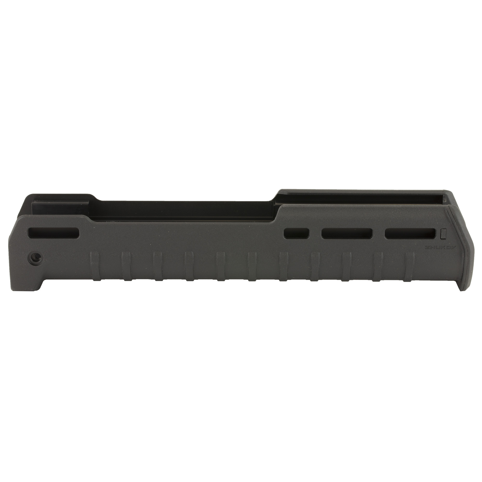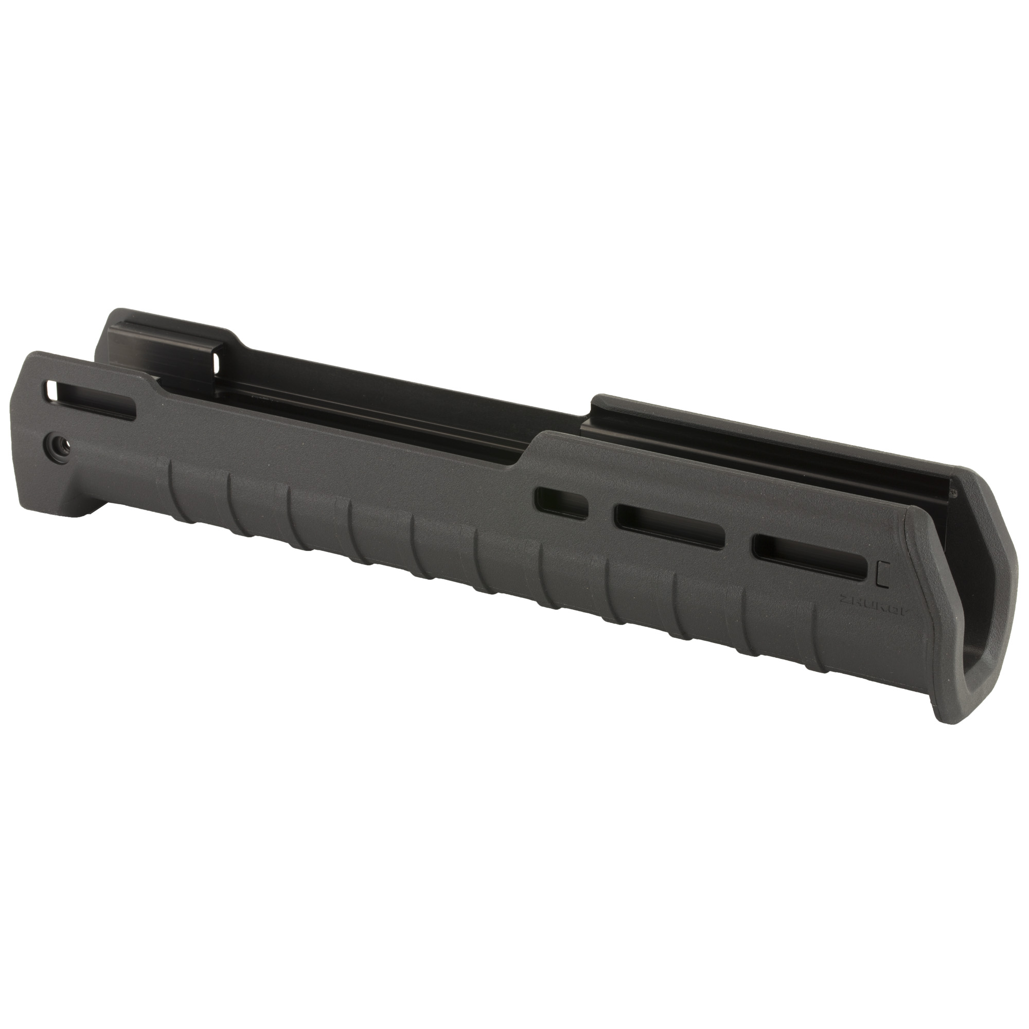Made in the USA, the Magpul Zhukov Hand Guard is a fully-featured AK forearm for the modern AK. The Zhukov Hand Guard offers an extended option for modern shooting techniques, polymer outer, aluminum chassis for strength and heat dispersion, a comfortable injection molded exterior for superior ergonomics, extended length provides large gripping surface for modern shooting techniques and M-LOK slots at the three, six and nine o’clock positions for mounting direct-attach M-LOK accessories or M-LOK 1913 Picatinny rail sections. Full length, hard anodized, aluminum chassis clamps directly to barrel and provides for flex-free mounting as well as excellent heat shielding. Mounts to most AK-47/AKM/AK-74 rifles with barrels between 16.75-18.25 mm in diameter under the hand guard and greater than 13” in length*. Compatible with the Ultimak gas tube rail for optics mounting, the Zhukov Hand Guard redefines functionality for the modern AK platform. Includes replacement polymer top cover, compatible with UltiMAK Optics Mount top cover.*NOTE: The Zhukov Hand Guard requires the permanent removal of the factory hand guard retaining cap and forward sling mount if so equipped. Please ensure your barrel diameter under the hand guard falls between 16.75-18.25 millimeters before cutting your retaining cap. Due to the wide range of tolerances of your typical AK, minor additional fitting may be required. Not compatible with Yugo pattern rifles or RPK style receivers.WARNING- due to extended Hand Guard length, barrels less than 13” long are not recommended. Hand Guard counts as one US compliance part for 922(r).