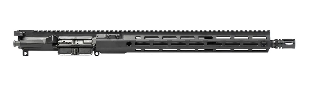 This complete upper includes our Minimal Optical Deflection (MOD) 4 handguard. The MOD 4 handguard seamlessly blends robust construction with an ergonomic form factor ensuring no compromises between the two. Machined from 6061-T6 aluminum the handguard is engineered with a focus on stiffness to drastically reduce deflection under load. It attaches to the upper receiver via a steel barrel nut which also serves to significantly reduce point-of-impact shift when using an infrared laser aiming device under load. - - A 7-sided M-LOK interface allows the user to customize their handguard to their exact specifications and needs. Lastly each of the 4 QD sockets on the MOD 4 utilize a steel liner to ensure a higher shear load and longer service life with the continued use of QD swivels. - - INCLUDES: - M4E1 Threaded Upper Receiver - MOD 4 15 Handguard - 16 Gov 5.56 Barrel Chrome Lined - Mid Length Gas System Pined Low Profile Gas Block - AR15 A2 Birdcage Flash Hider - Product comes assembled - - M4E1 THREADED UPPER RECEIVER FEATURES: - New enhanced forging that gives the upper receiver a billet look - New picatinny profile that blends seamlessly with our Enhanced Series Handguards - M4 Feedramps - .250 takedown pin holes - Laser engraved T-marks - Includes port door and forward assist installed - - MOD 4 HANDGUARD FEATURES: - Full top picatinny rail for optional attachments - Quick disconnect sling socket at the 3 6 and 9 o’clock positions - Compatible with low profile gas blocks - 1.2 Inside diameter - 1.5 Outside diameter - Compatible with mil-spec AR15 upper receivers and barrels - - 16 Gov 5.56 Barrel: - 5.56x45mm NATO - Cold Hammer Forged - Chrome Lined Finish - .750 gas block journal - Mid-Length Gas System - 1/7 Twist Rate - M4 Feed Ramp Extension - HP and MPI Tested - Standard A2 Flash Hider