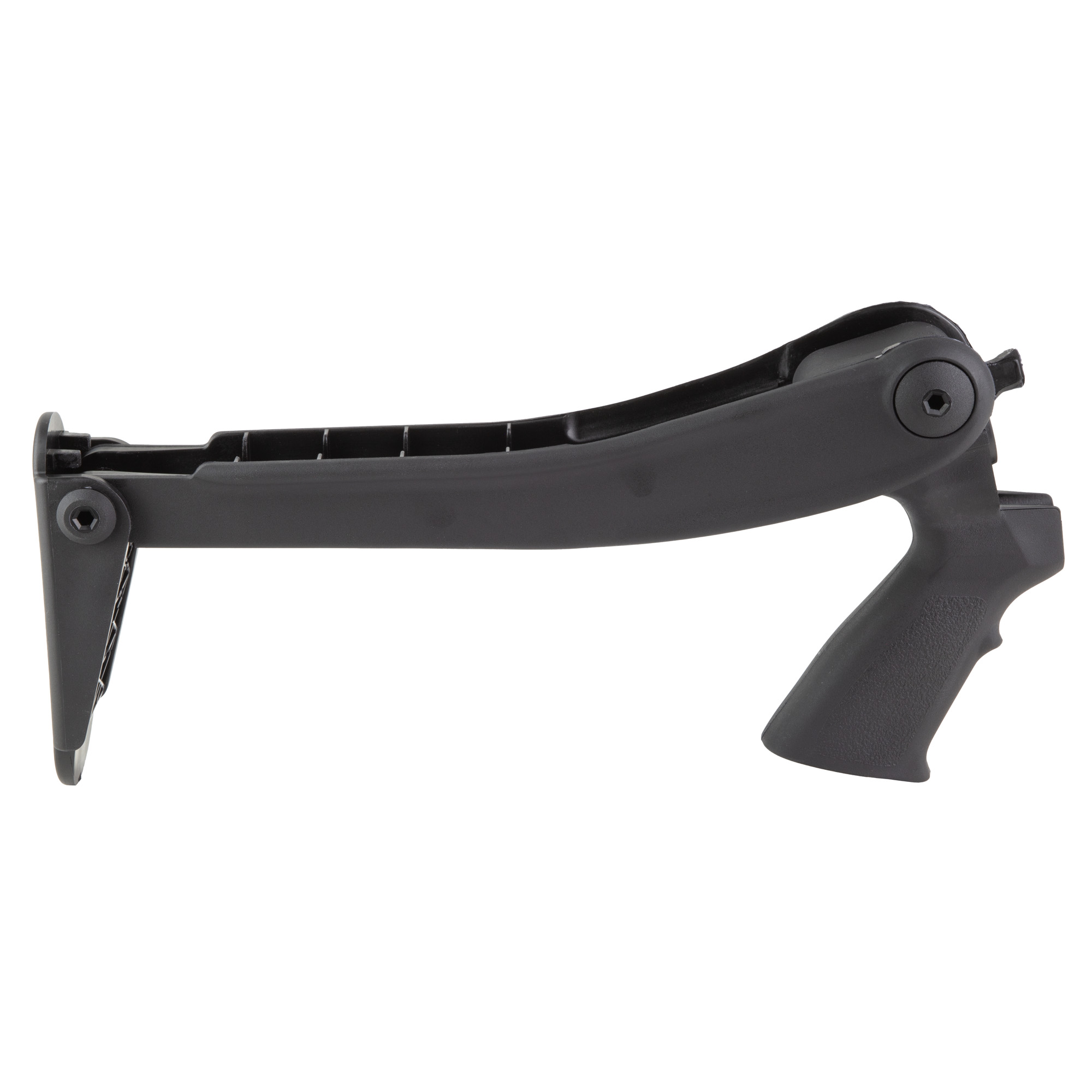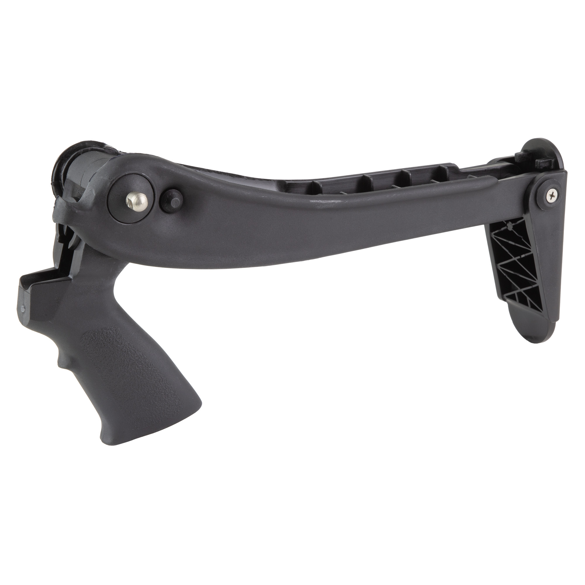 Shotforce Marine Top-Folding Stock allows your shotgun to function with the stock extended or folded. The quick release button allows the buttstock to fold or unfold instantly. Reversible for right and left handed shooters. The stock also includes integral pistol grip, mounting adapters and required hardware. This stock is compatible with Maverick 88 12 & 20 GA; Mossberg 500,535,590,835 12 & 20 GA; Remington 870 12 GA; Winchester 1200,1300 12 & 20 GA.