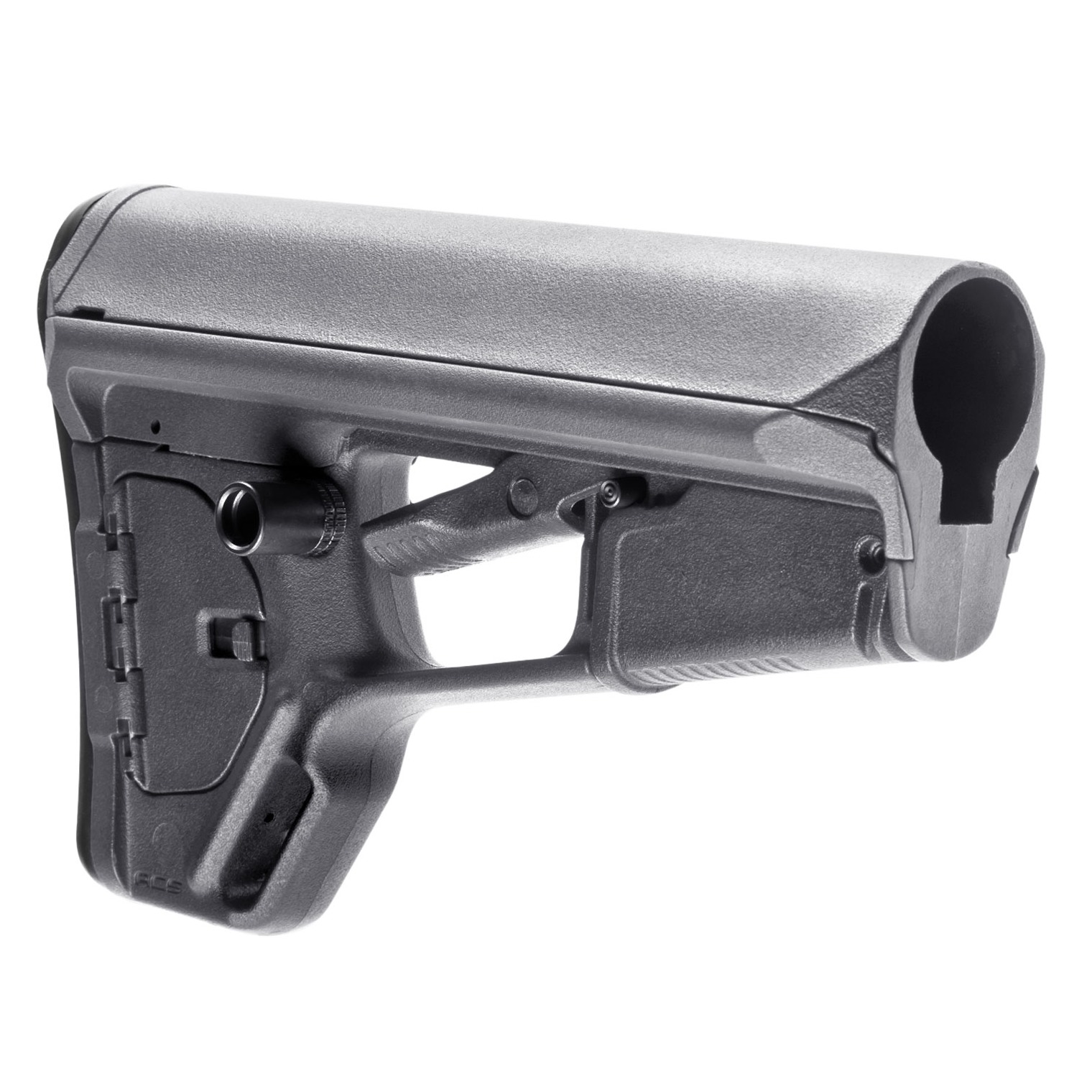The Magpul ACS-L (Adaptable Carbine Stock - Light) is a drop-in replacement buttstock for AR15/M4 carbines using mil-spec sized receiver extension tubes. A streamlined version of the ACS, the ACS-L utilizes the same center storage compartment and cheek weld but removes the battery tubes for a slimmer, lighter weight package.