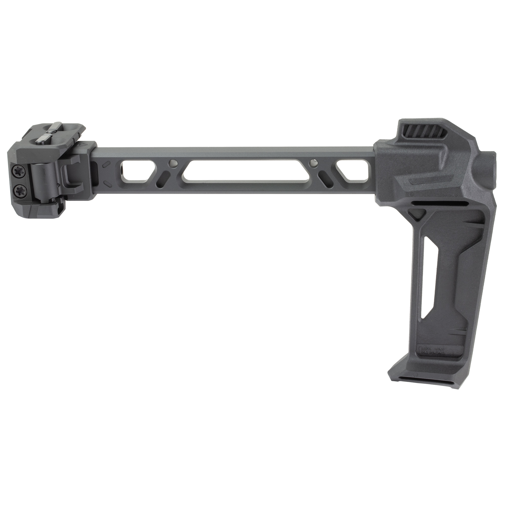 The Strike FSA Dual Folding Adapter - Stabilizer Edition is a versatile and innovative patented system that offers unparalleled convenience and flexibility. With its intuitive folding mechanism, you can fold the adapter to either the left or right side of your weapon platform. Deployment is quick and effortless with just a simple upward pull on the bar near the hinge. Its 3-degree tilt angle is designed to help prevent interference with your weapon’s ejection port when folded to the right as well. This adapter fits directly onto a 1913 Picatinny interface with built-in locking lucks for secure attachment. The included Stabilizer end is a great ergonomic option for completing your pistol build. A 3-degree down tilt angle is added to help prevent interference with the weapons ejection port when folded to the right side. The Strike Dual Folding Adapter mounts directly to a 1913 Picatinny interface with two (x2) built-in locking lugs for a secure attachment. For the stock rear piece, included is a rear rubber anti-slip buttpad to create the best possible shoulder weld for rifle or registered Short-Barrel Rifle (SBR) setups. A single QD point is located on the rear of the stabilizer and ambidextrous QD sling mounting points for the stock. The Strike Dual Folding Adapter is constructed with a steel hinge and 6061-T6 Aluminum base, adapter & strut. Get a unique modular system with interchangeable (sold separately) parts like optional cheek riser (to be only used legally with stock setup), strut lengths and other accessories.
