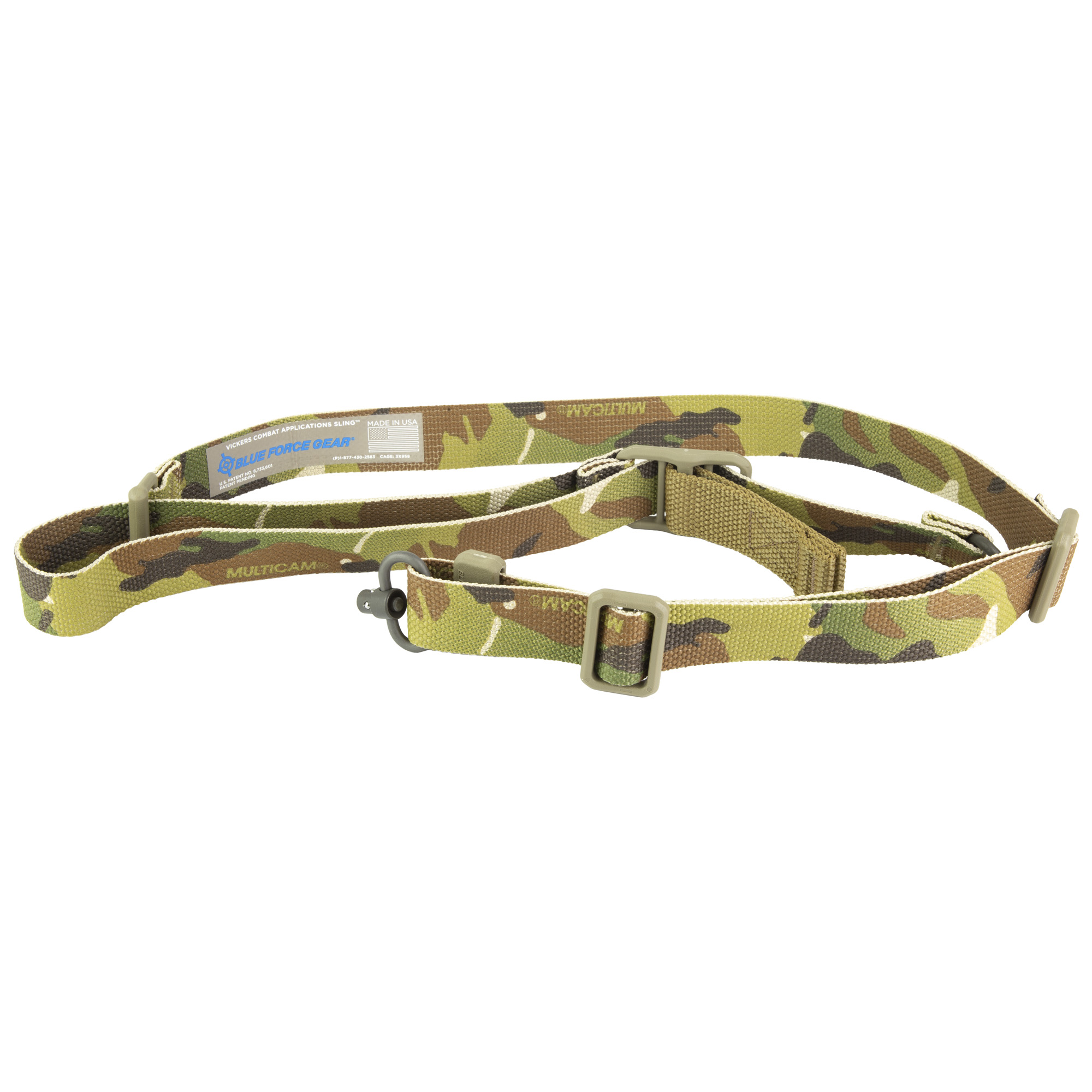 Blue Force Gear’s Vickers 221 Sling allows users to switch from 2-point to 1-point mode instantly. The sling is constructed of Invista solution dyed Cordura webbing with ITW GhilleTex Acetal hardware. A standard push button swivel and polymer molded Burnsed Socket are woven onto the allowing full adjustability. It is compatible with any weapon with two QD sling swivel sockets with the rear socket towards the end of the receiver. This unpadded model has a MultiCam finish.