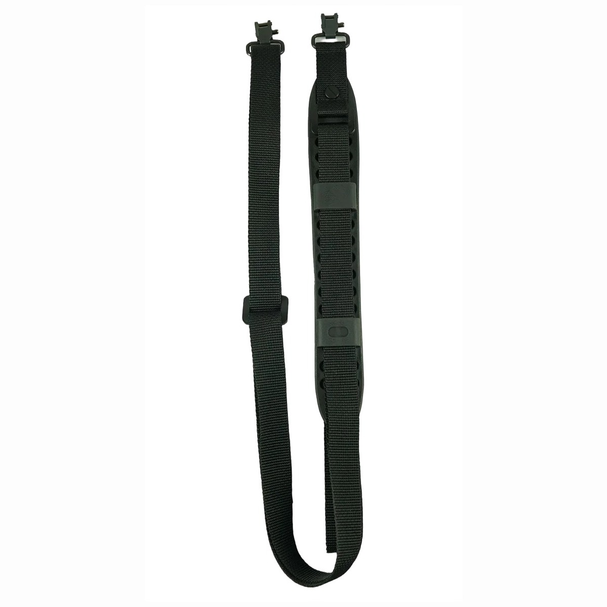 The Compact Molded Super Sling is Lightweight, and Low Profile It has a 1.75” Non-Slip Pad Conforms to the Contour of the Shoulder Area. This sling also has a Tri-Glide Slide for Convenient Length Adjustability and a 1” Rot Resistant Nylon Webbing. Includes 1” Wire Formed Swivels