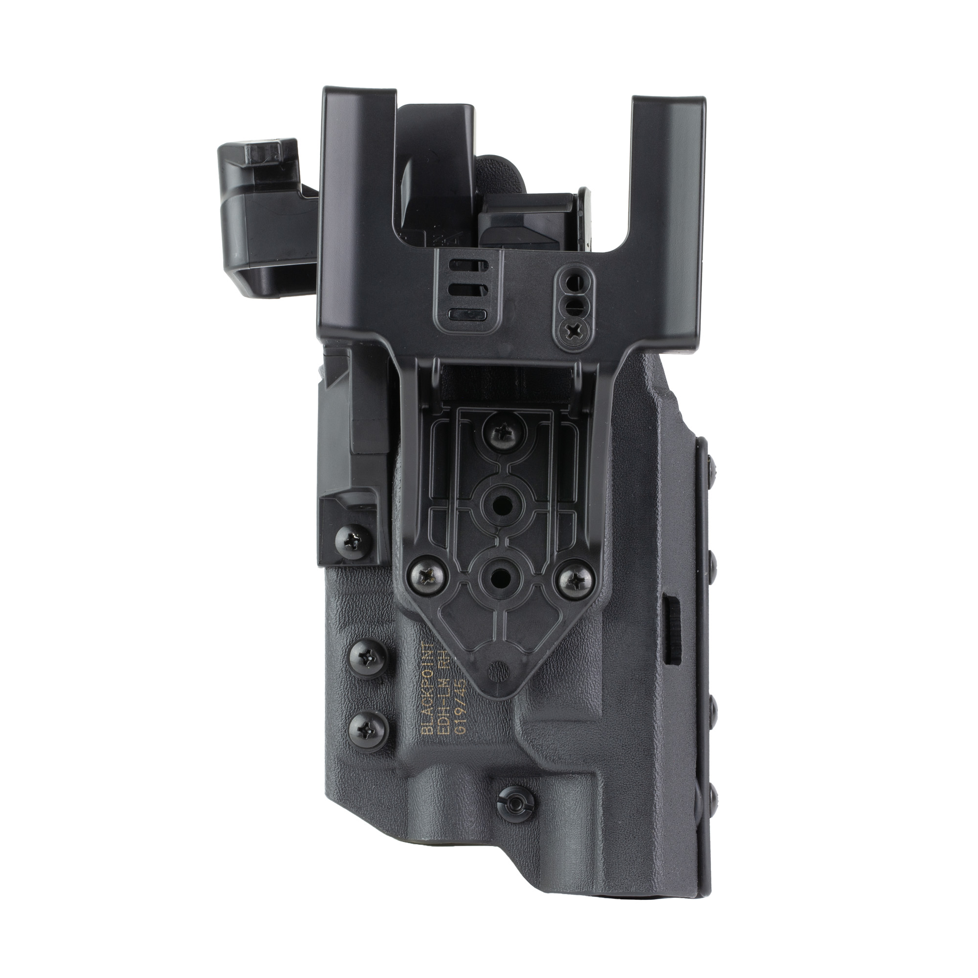 BlackPoint Tactical, Enhanced Duty Holster - Light Compatible, Outer Waistband Duty Holster, Fits GLOCK 19/45 with Light, Right Hand, Kydex Construction, Black, Includes (3)-Shims and Drop Offset Mount