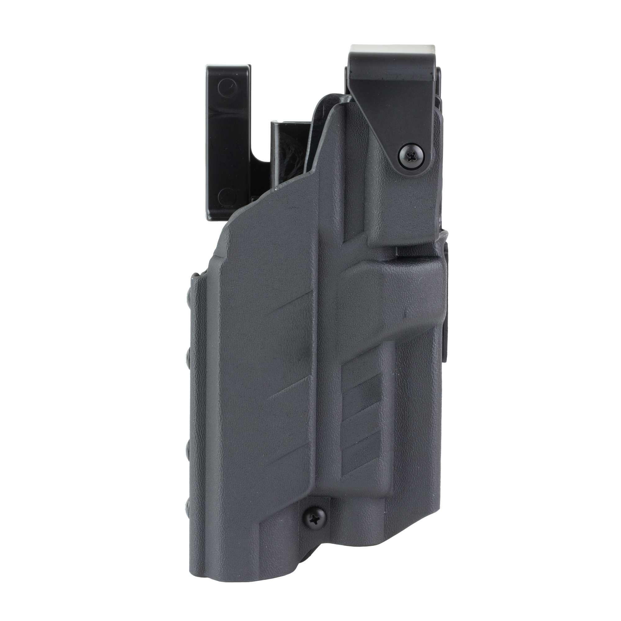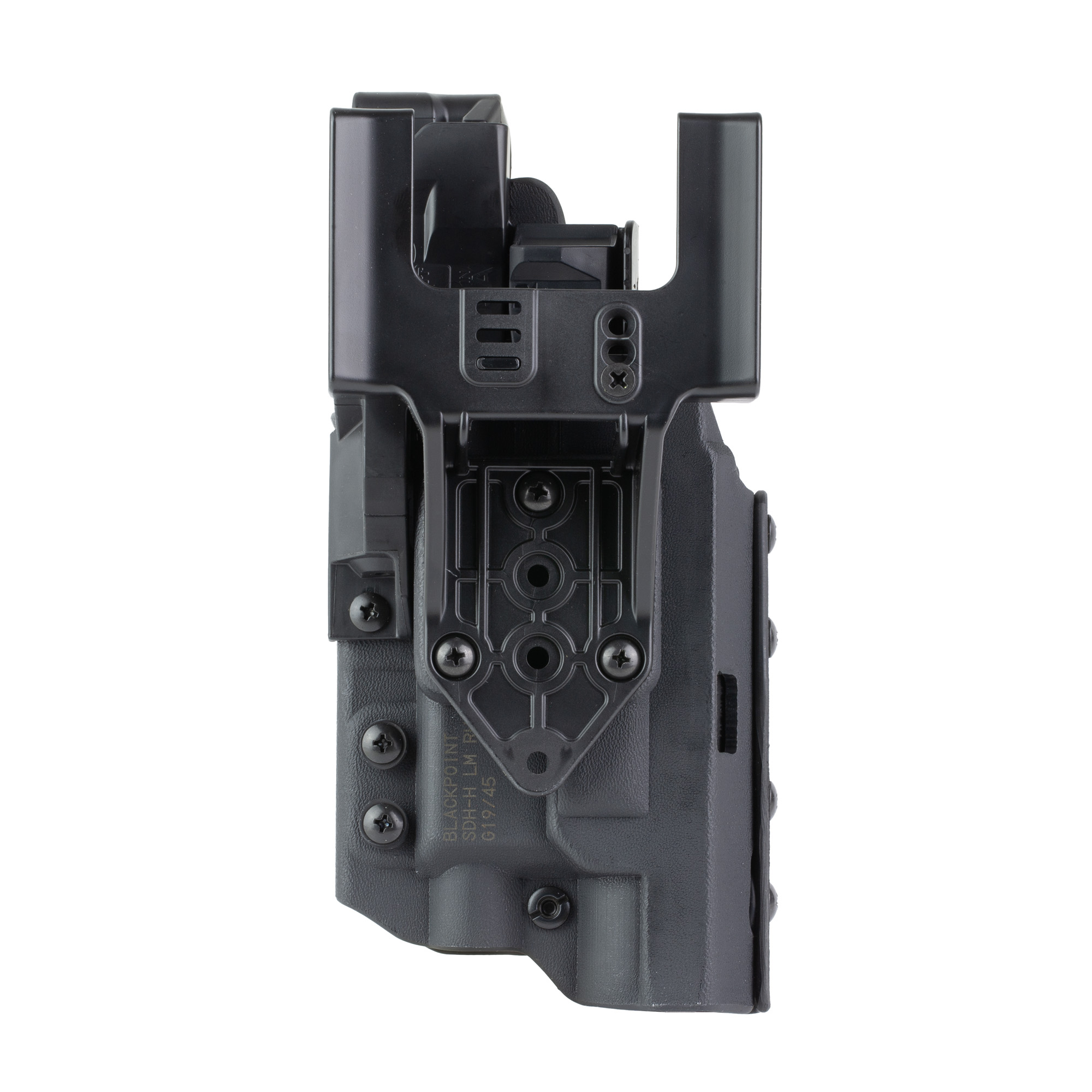 BlackPoint Tactical, Slick Dity Light Holster with Hood, Outside Waistband Duty Holster, Fits GLOCK 19/45 with Light, Right Hand, Kydex Construction, Black, Includes (3)-Shims and Drop Offset Mount