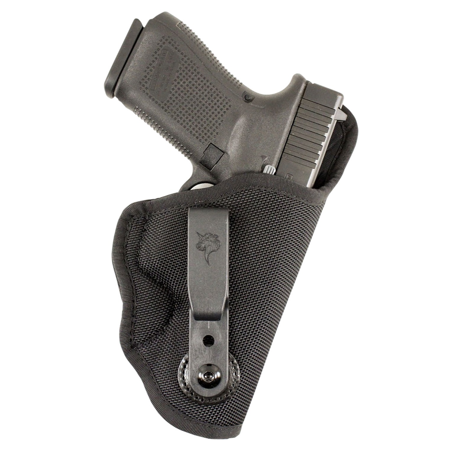 Variable 87 is a light weight IWB holster made from 1060 Ballistic Nylon, closed cell foam and lined with slick pack cloth. It is also fitted with the DeSantis Tuckable 360 clip for unlimited cant adjustment and integrated sweat shield. This feature allows operator to wear this holster anywhere on the waistline.