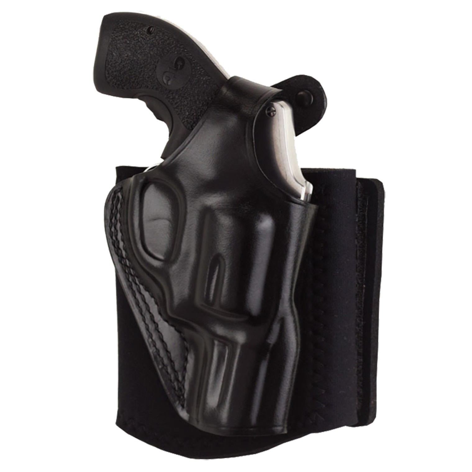 The Ankle Gloves wide neoprene ankle band and hook-and-loop closure offer extended wearing comfort and unmatched security. Additional comfort is provided by sheepskin padding between the holster and ankle. It features a reinforced thumb break for speed of draw and detailed molding for firearm retention; neoprene ankle band with hook-and-loop fastener and fits ankles up to 13” in circumference. Compatible with Glock 42; Sig P365, P365 SAS. Now will fit guns with or without a red dot sight.