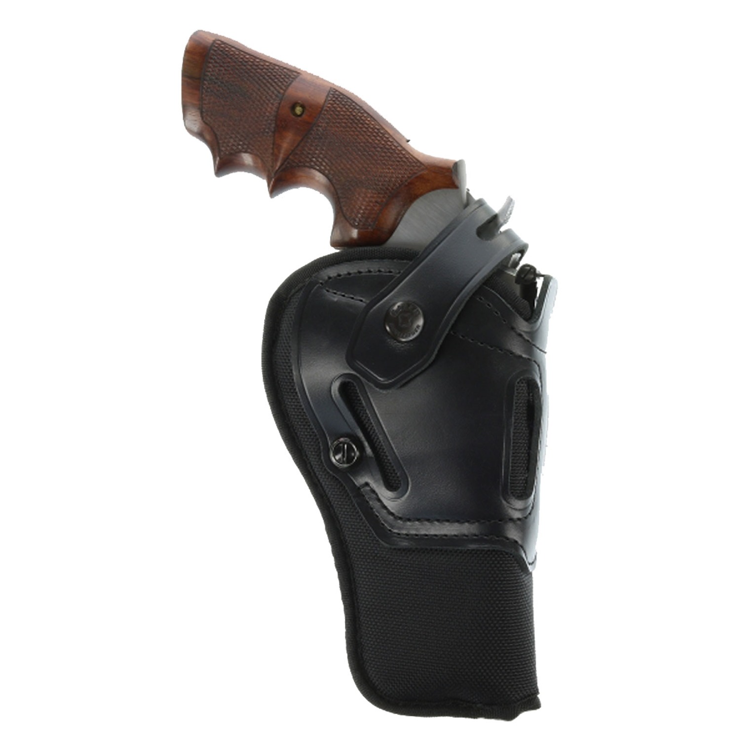 The Switchback is fully ambidextrous and can be carried in the strongside or crossdraw positions. The safety strap has a hammer slot and is reversible for ambidextrous use. Fits Colt King Cobra 2.50” (Pre-2019), Python 2.50”, Python 3”; Dan Wesson .357 2.50”; Ruger GP100 3”, Security Six 2.75”, Service Six 2.75”, Speed Six 2.75”; S&W K Frame 19/66 2.50”, L Frame 686/386 PD 3.50”, L Frame .44 Special 2.50”/3”, L Frame 396 3.13”, L Frame 686 3”; Taurus 415 2.50”.