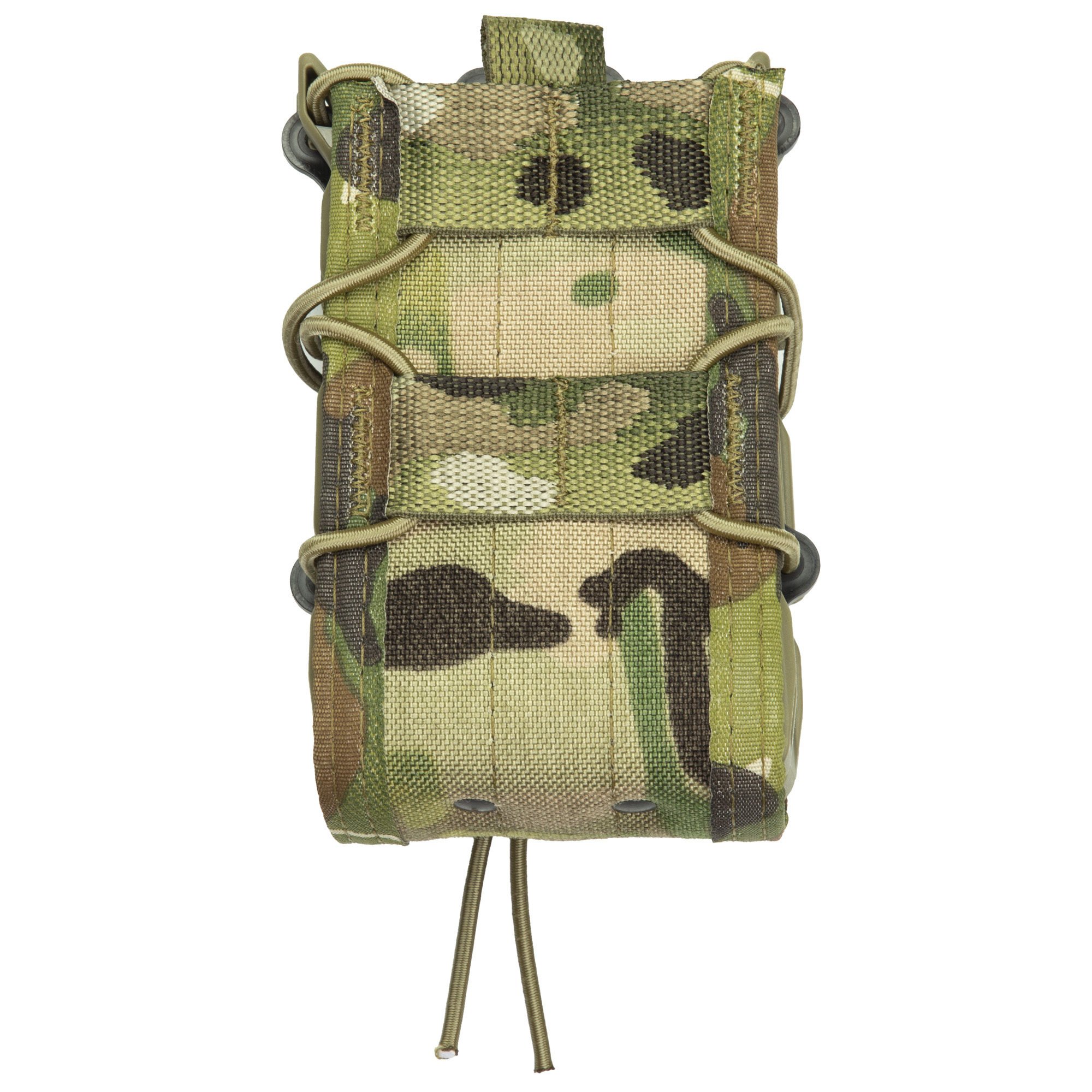 The X2R uses injection-molded polymer brackets, Cordura front and back, shock cord lacing, and thin sheet of HDPE to separate and lock just about any combination of magazines into place. USGI, HK, PMAG, ARC, FAL, AK 30/ 40, LR20 and M14 magazines are all held securely and deployed easily and silently on demand.