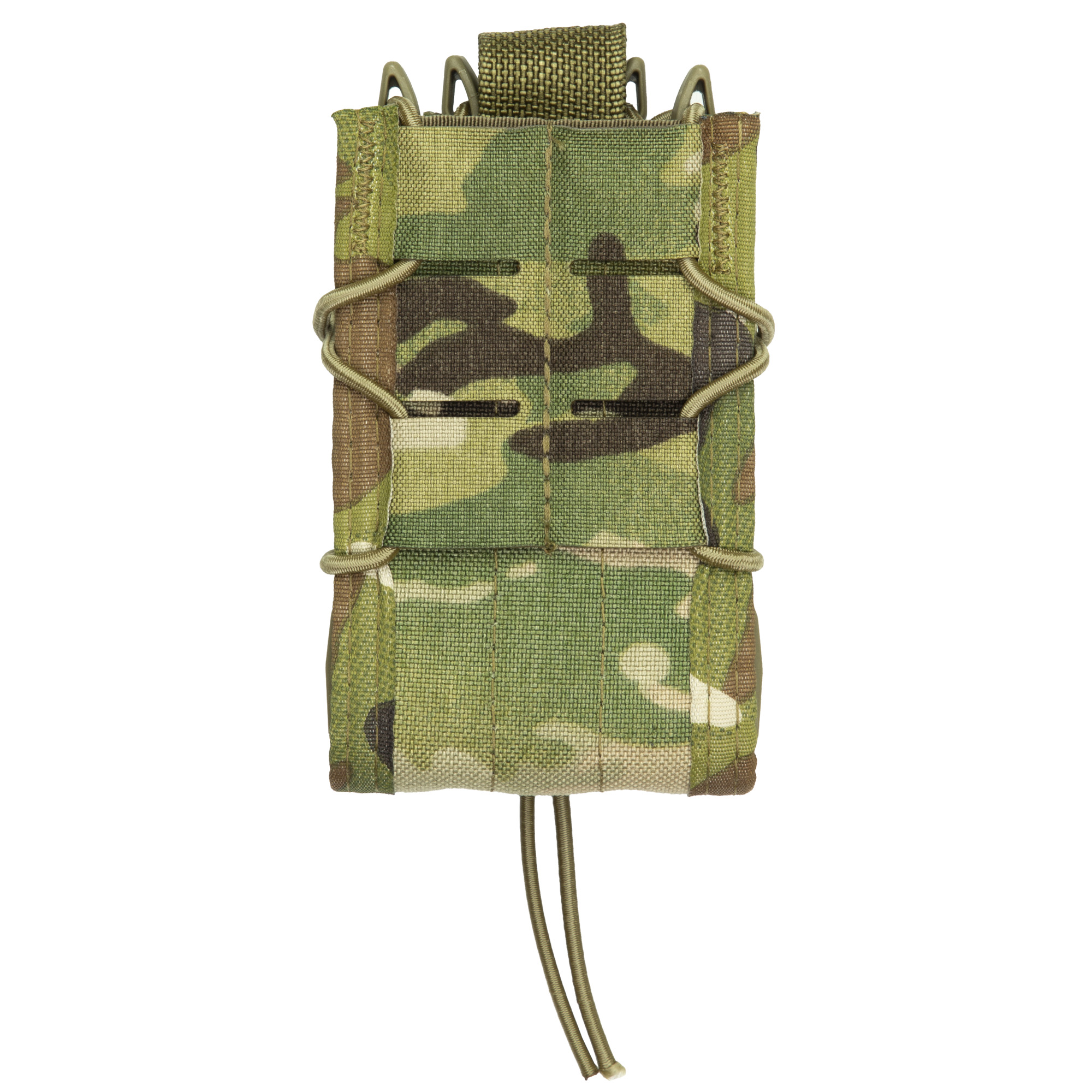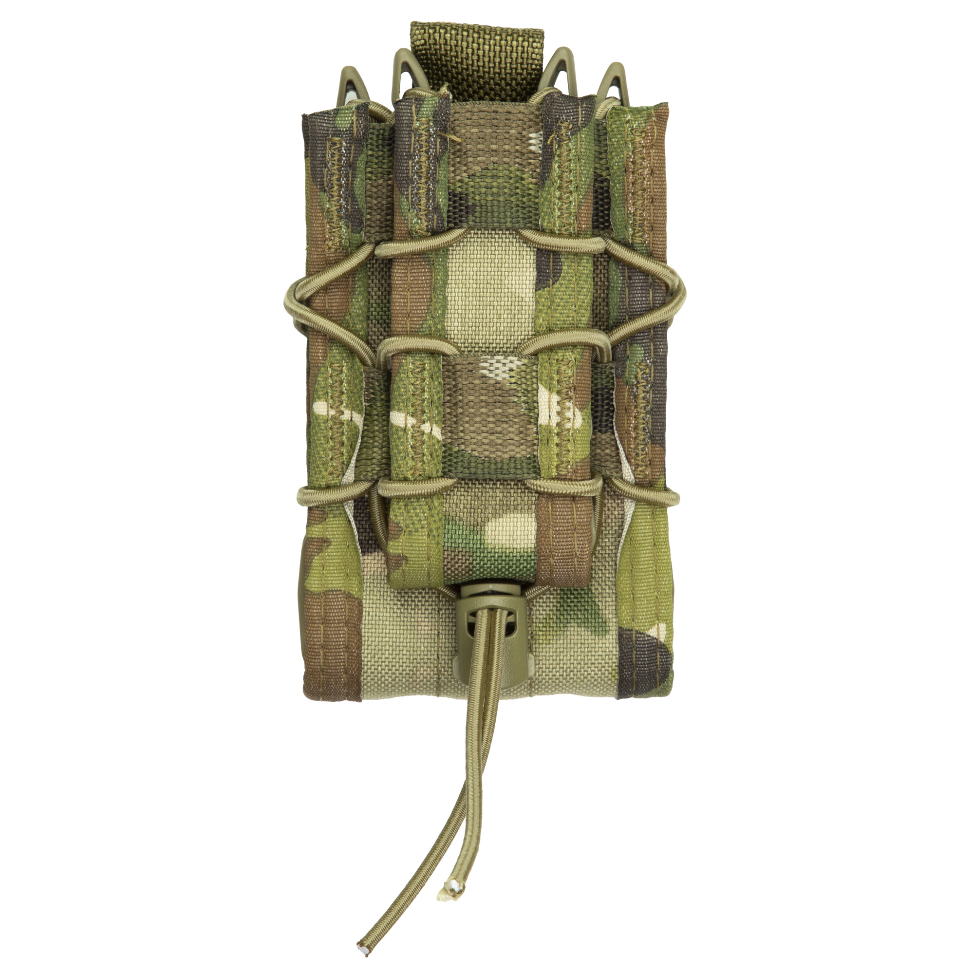 This line of polymer TACOs functions much the same as their nylon counterparts. The body and brackets are made with a durable and flexible, proprietary polymer and are laced together with a bungee cord. As with the originals, these pouches grip and retain a wide variety of magazine styles and calibers. It mounts to both MOLLE and belts up to 2” with High Speed Gear’s universal HSGI Clips, has a pop lock configuration that orients excess bungee down and out of the way, and features grommets for drainage.