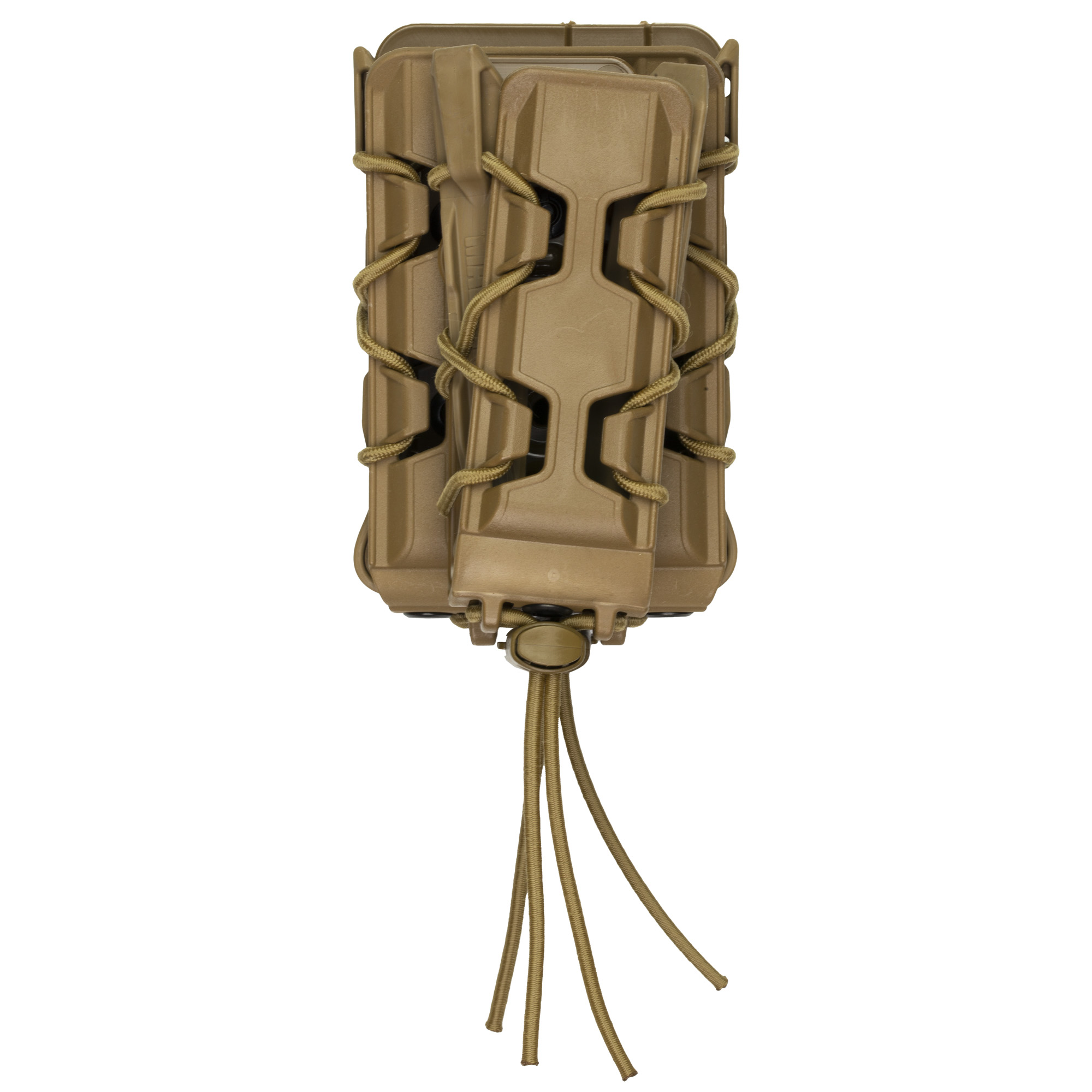 This line of polymer TACOs functions much the same as their nylon counterparts. The body and brackets are made with a durable and flexible, proprietary polymer and are laced together with a bungee cord. As with the originals, these pouches grip and retain a wide variety of magazine styles and calibers. It mounts to both MOLLE and belts up to 2” with High Speed Gear’s universal HSGI Clips, has a pop lock configuration that orients excess bungee down and out of the way, and features grommets for drainage.