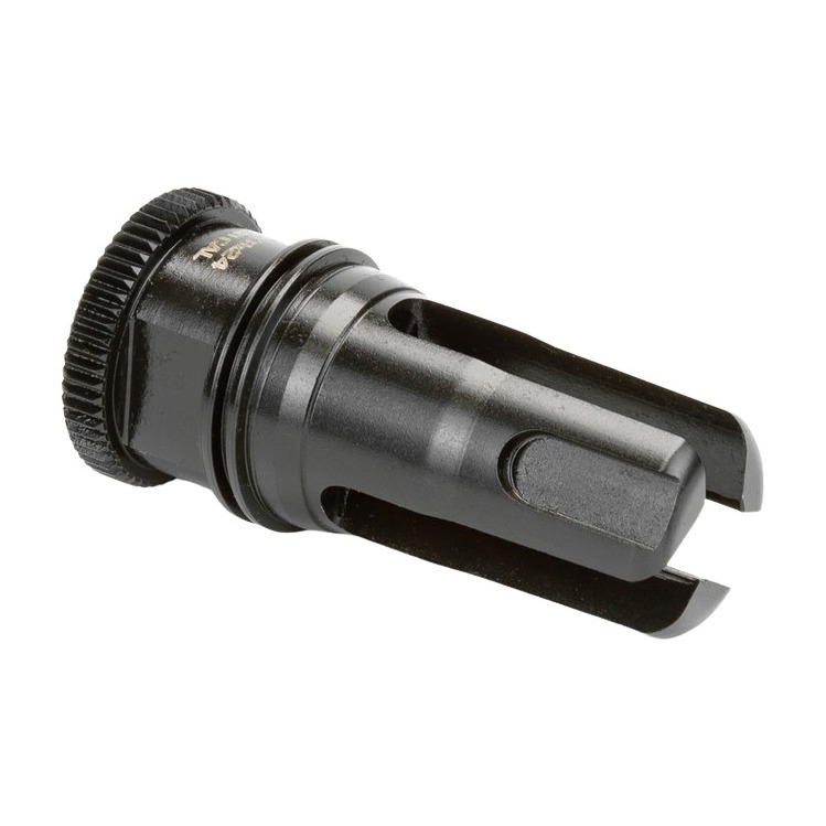 Griffin Armament is proud to introduce DUAL-LOK our newest QD mounting system for rifle suppressors. The DUAL-LOK system is comprised from two parts the DUAL-LOK Mount and the DUAL-LOK muzzle device (of your choice). This page is for the DUAL-LOK Stealth Flash Hider 2.25. - The muzzle device integrates 60 machined mounting position grooves which is doubled by the mount’s two locking positions hence the double entendre DUAL-LOK. How is this achieved? The mounts’ two locking positions are machined out of phase of one another by 3 degrees which provides the 120 effective locking positions and ensures a tightly mounted and locked suppressor. When the suppressor is installed only one of the two positions will generally function by allowing the spring to push the locking collar rearward over the splines. - Time intensive R&D resulted in a high performance 3 prong flash hider with incredible resonance reduction. These suppress flash extremely well and do not ring or ping when fired hence stealth. CNC Machined of heat treated 17-4 ph stainless steel material and Melonite QPQ treated ensures durable corrosion free service life. - Diameter: 1.07 [grooves] .93 [unit] - OAL: 2.34 - Weight: 3.3 oz - Materials: 17-4PH Stainless Steel - Finish: QPQ Nitride - Key points - Utility patent pending - Wear free mounting system requires no consumable parts - Anti-Resonance flutes to prevent pinging under fire - Taper lock interface ensures security and accuracy - 120 effective positions ensure a rock-solid suppressor mount and provide extremely low POI shift - 2.25 length - Pre-drilled for pinning & welding 14.5 barrels to 16 OAL - 17-4 PH Stainless steel - Nitrided for increased surface hardness corrosion and wear resistance -
