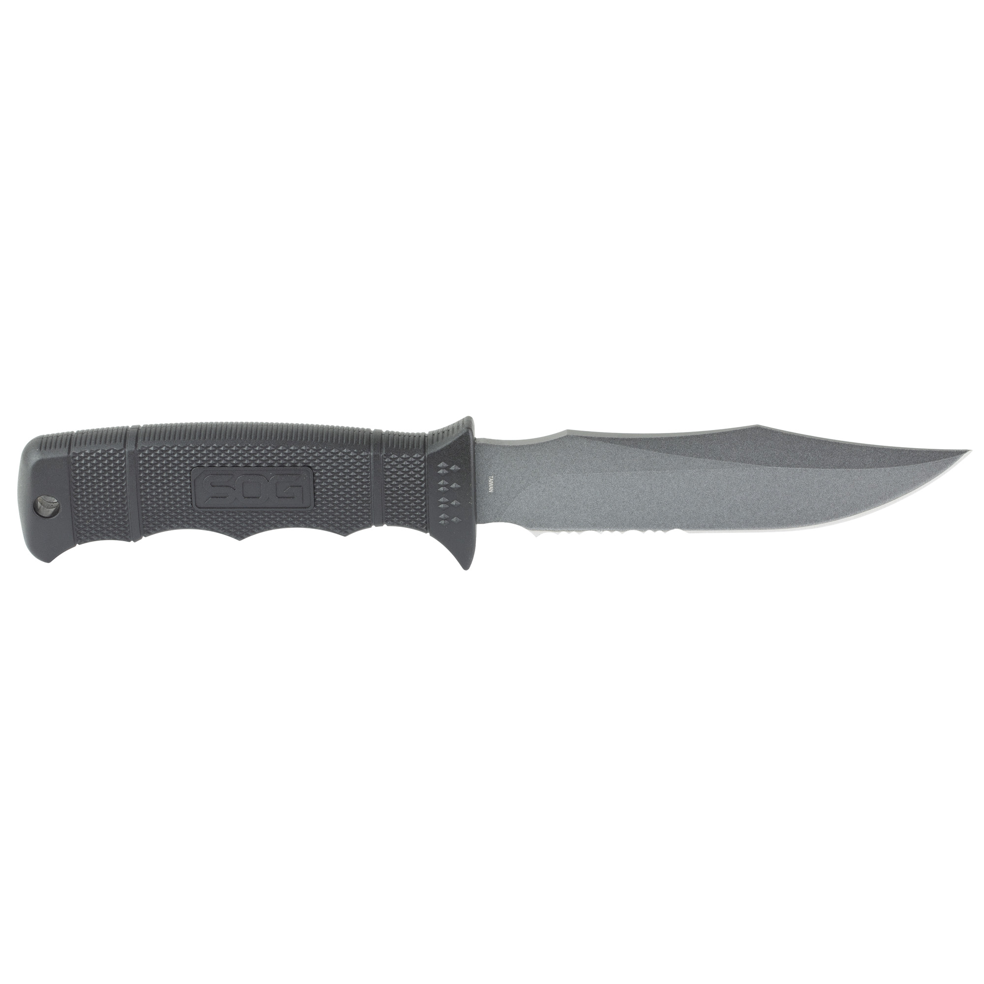 S.O.G SOGM37NCP Seal Pup 4.75” Fixed Clip Point Part Serrated Powder Coated AUS-8A SS Blade Black w/Raised Diamond Pattern GRN Handle Includes Lanyard/Sheath