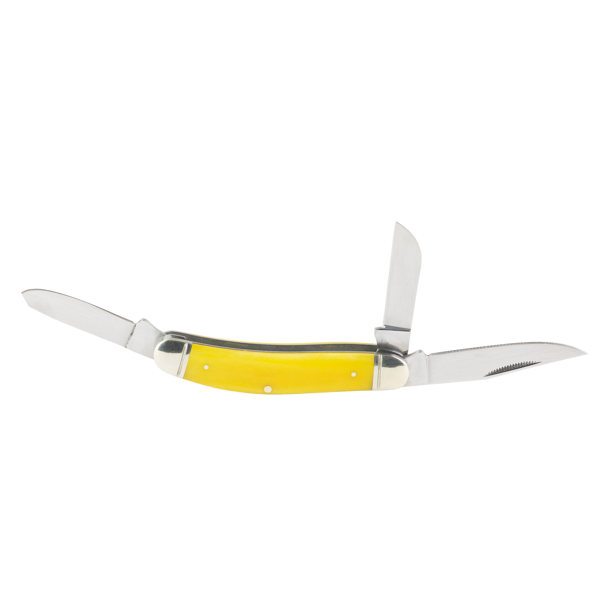 The Cold Steel Gentleman’s Stockman Folding Knife with three blades, which has been customarily called a Stockman knife, has the standard clip point and spey point blade of the Trapper with the addition of a sheepsfoot blade. It features handles made from authentic bone and is highlighted with polished metal bolsters. The rugged handles are substantially sized for hard work, even with gloved hands. It is constructed in a traditional Jack Knife pattern, with three polished stainless steel blades, a clip point blade for piercing and cutting, a spey blade for skinning and gutting and a sheeps foot blade to avoid piercing during any slicing work. Its a practical knife that is useful for all sorts of chores and it fits in well in almost any environment from urban to rural.