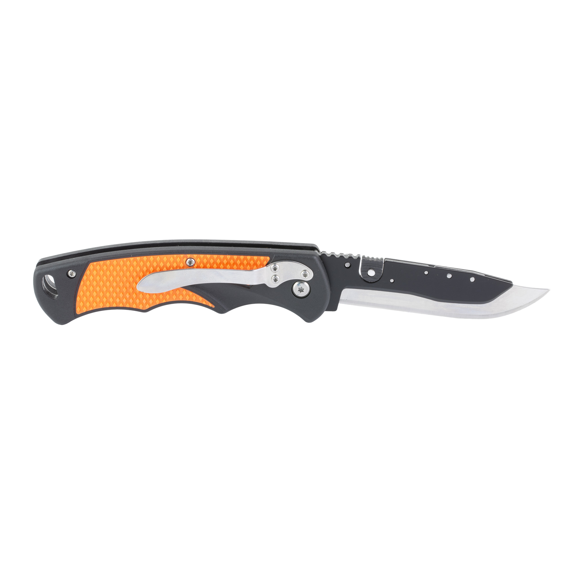 The Accusharp Replaceable Blade Razor Knife includes two replacement blades which allow you to quickly change out your dull blades with the quick release lever. The push button on the side allows you to easily lock your blade into 3-locking positions.