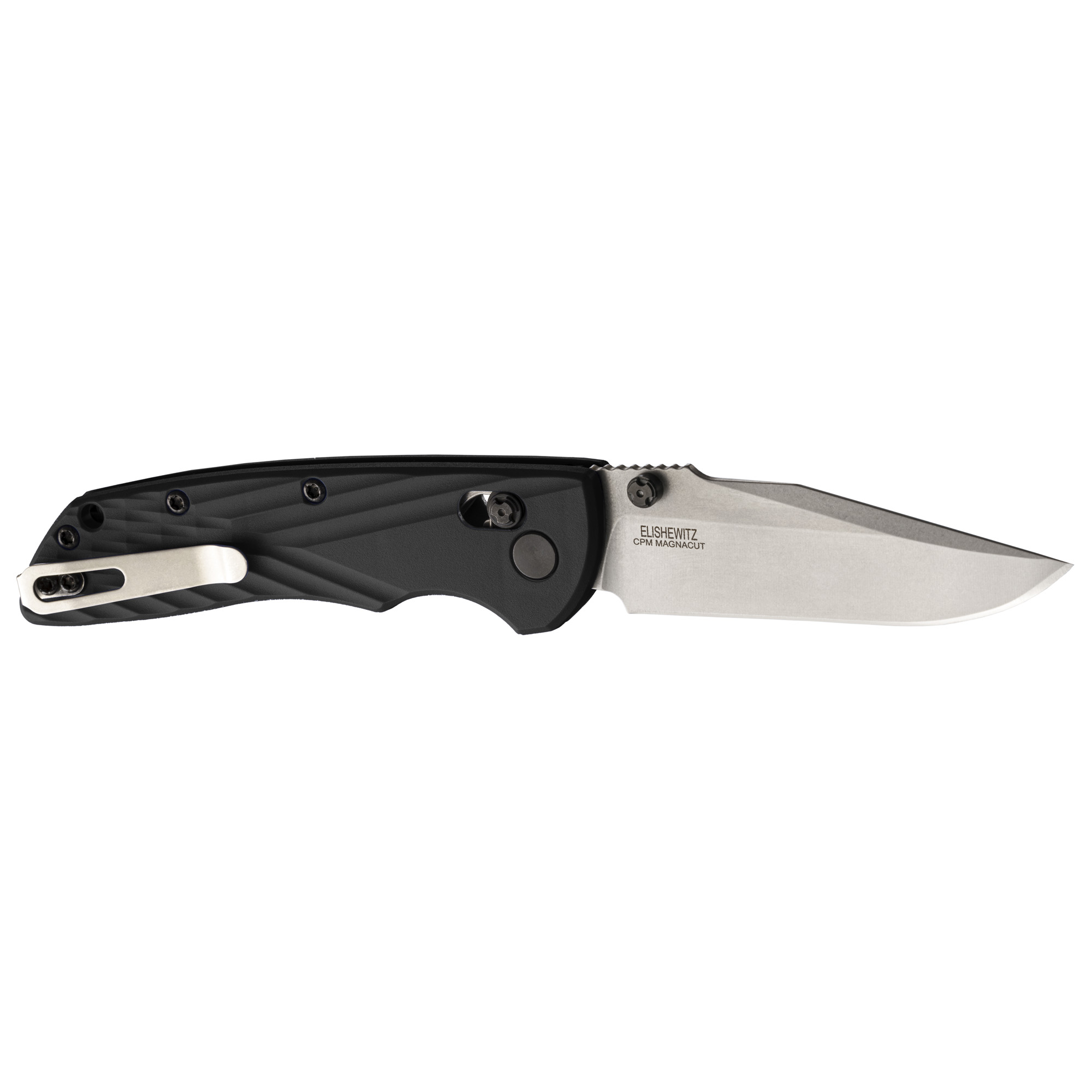Hogue 24379 Deka 3.25” Folding Clip Point Plain Stone Tumbled CPM MagnaCut Steel Blade, Black Textured GRN Handle