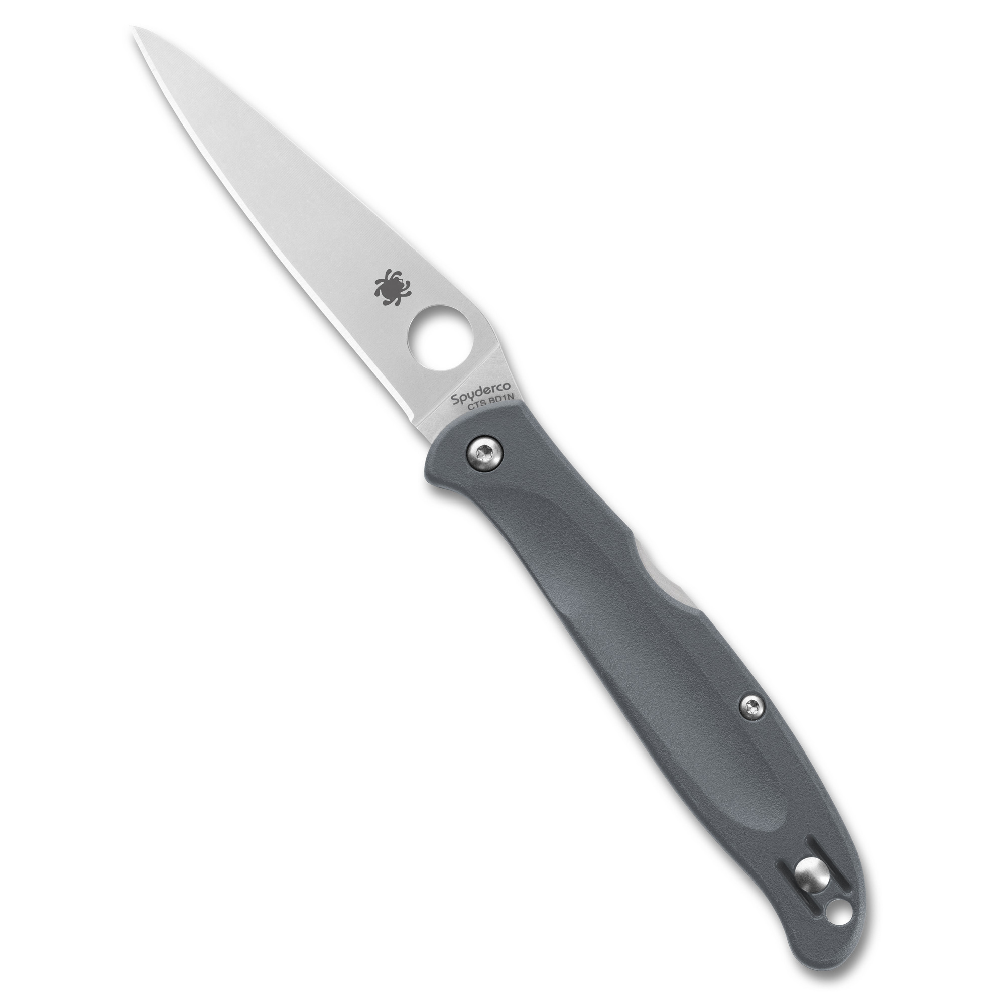 Spyderco, Charisma, Folding Knife, 2.98” Drop Point Blade, 6.8” Overall Length, CTSBD1N Blade Steel, Plain Edge, Satin Finish, Silver, Gray FRN Handle, Back Lock
