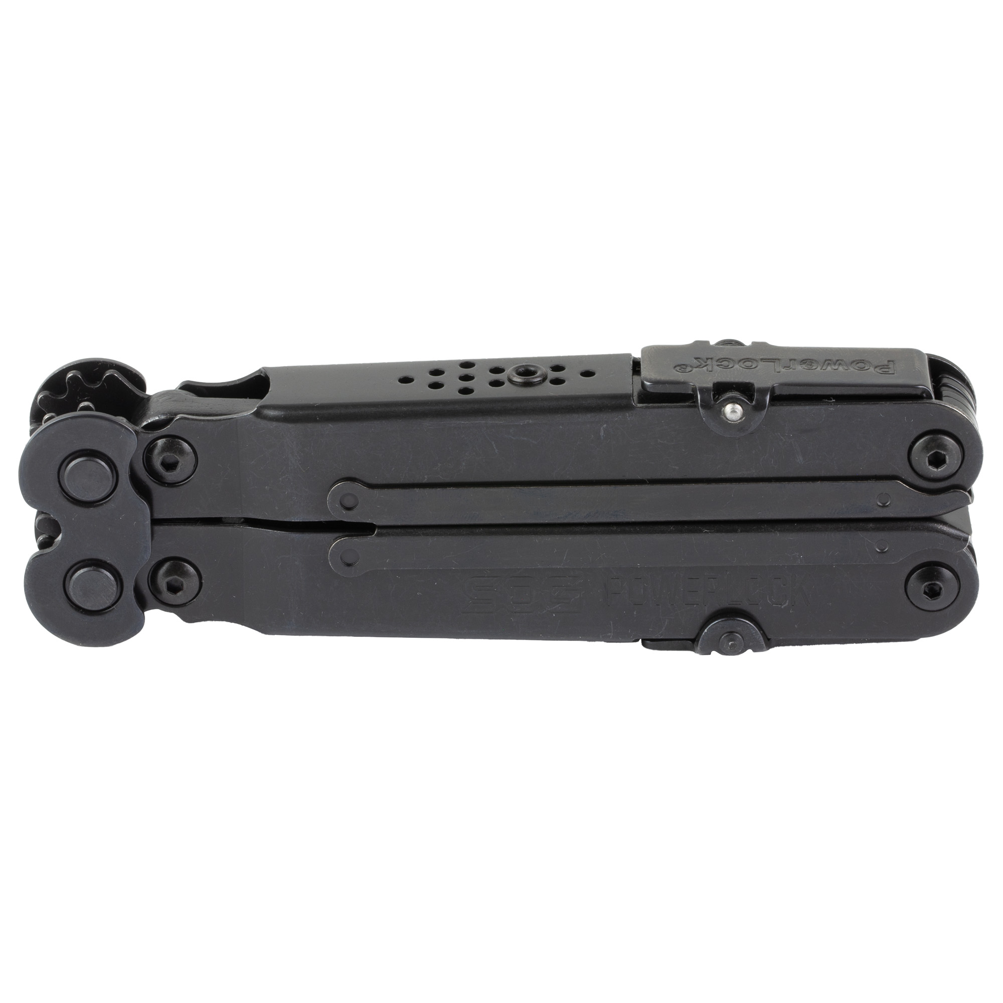 Using the proven PowerLock chassis, SOG is the only company to apply Compound Leverage technology to EOD (Explosive Ordnance Disposal). This makes it a breeze to crimp blasting caps and demolition cord with less hand pressure. Another unique SOG feature is the positioning of the crimper device within the confines of the handle…not in the plier jaw. This serves to minimize collateral damage to the crimper and allows the operator to have full use of the uninterrupted plier surface. Additionally, there is no weakening of the pliers that often causes breakage of the plier tips. The crimper produces non-flaring, high pull out strength crimps that meet government fuse well specifications. 18 tools at your fingertips- includes a gripper, hard wire cutter, wire crimper, blasting cap crimper, double toothed wood saw, partially serrated blade, 3-sided file, large screwdriver, Phillips screwdriver, 1/4’ drive, awl, can opener, small screwdriver, bottle opener, medium screwdriver, scissors and rulers. Includes nylon pouch.