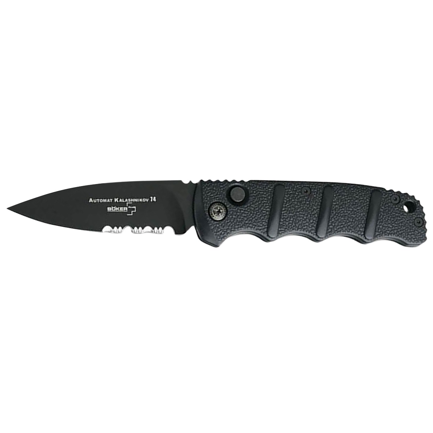 This innovative interpretation of the Kalashnikov series is designed for the line of Boker Plus knives. Featuring rugged aluminum handle scales with structured finger grooves for a secure and comfortable grip, and available in a variety of blade steels and styles.