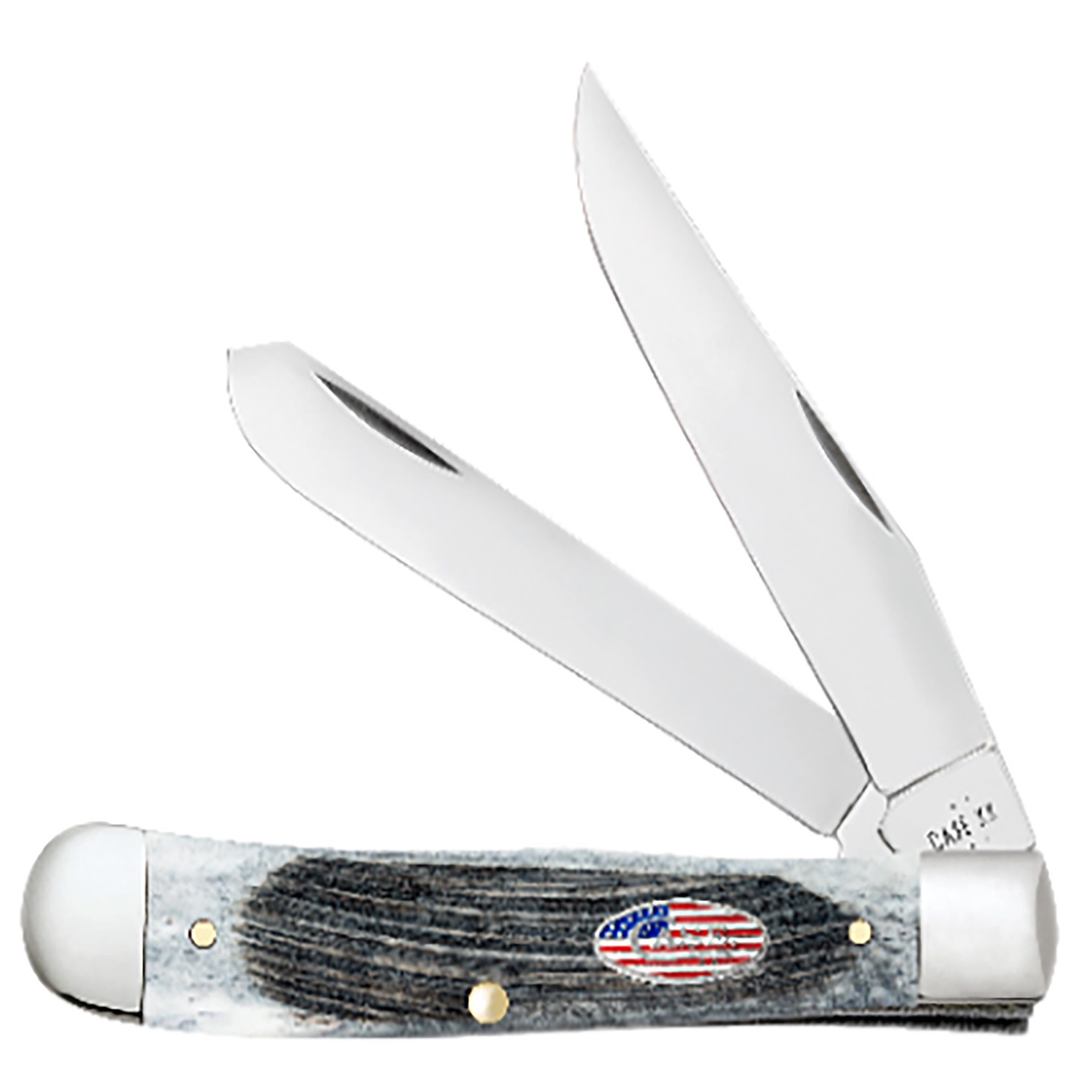 Case 53061 Stockman Stars & Stripes Medium 2.57”/1.88”/1.71” Folding Clip Point/Pen/Sheepsfoot Plain Mirror Polished Tru-Sharp SS Blade, Sawcut Jig Gray Bone Handle, American Flag Shield