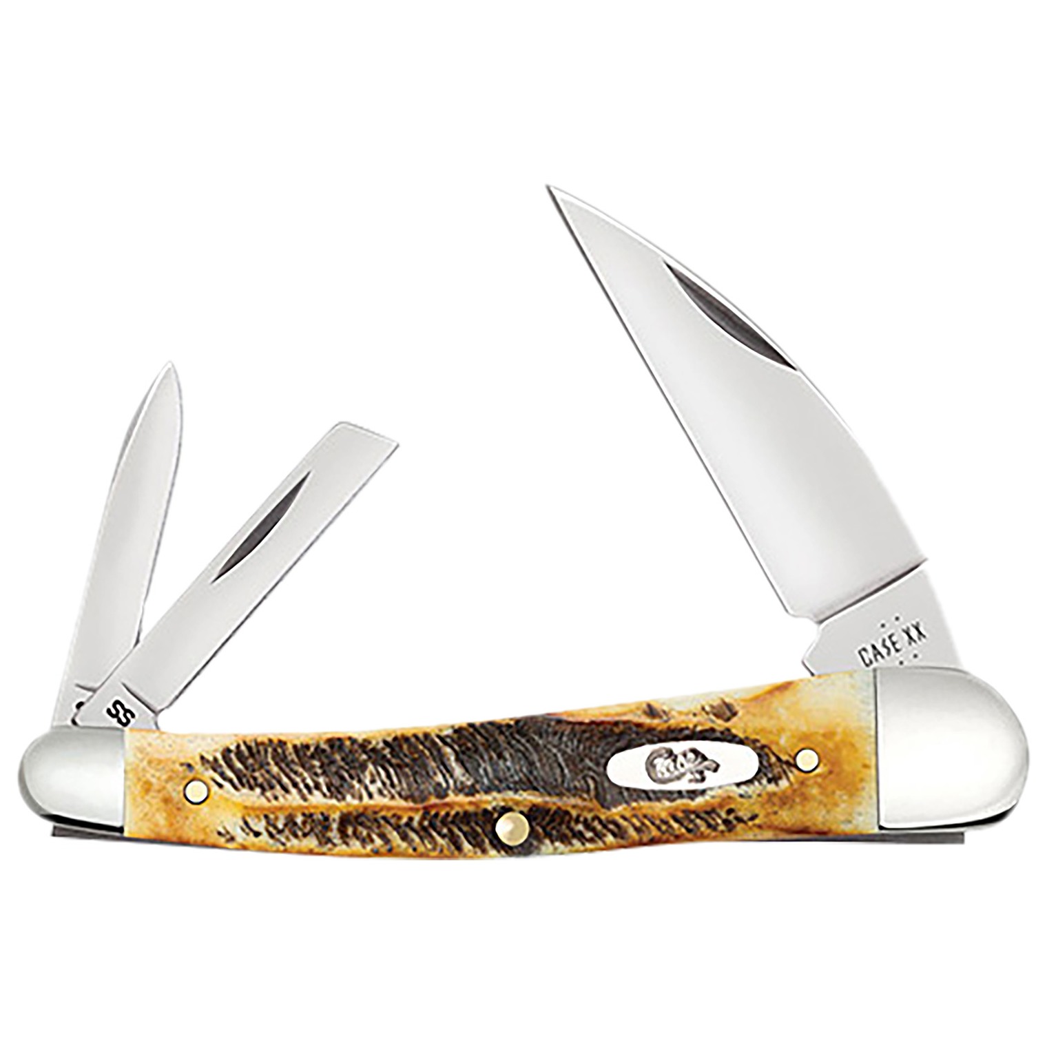This Seahorse Whittler is a part of the Case 6.5 BoneStag Family. The Wharncliffe blade is the blade of choice. This blade is great for cutting and has a finer edge/point for increased control. The pen blade is great for small, detailed uses, especially for everyday use, such as opening envelopes and boxes. The coping blade is similar to a Sheepsfoot blade but with an angled point. It is used for making cuts in tight areas or curved cuts. This blade is popular with carpenters and electricians as it is similar to a coping saw but without the teeth and can be used to scratch lines in wood or other materials. The slip joint pocket knife is constructed with Case Tru-Sharp Stainless Steel, which is a special high-carbon steel that helps the blades hold an edge longer.