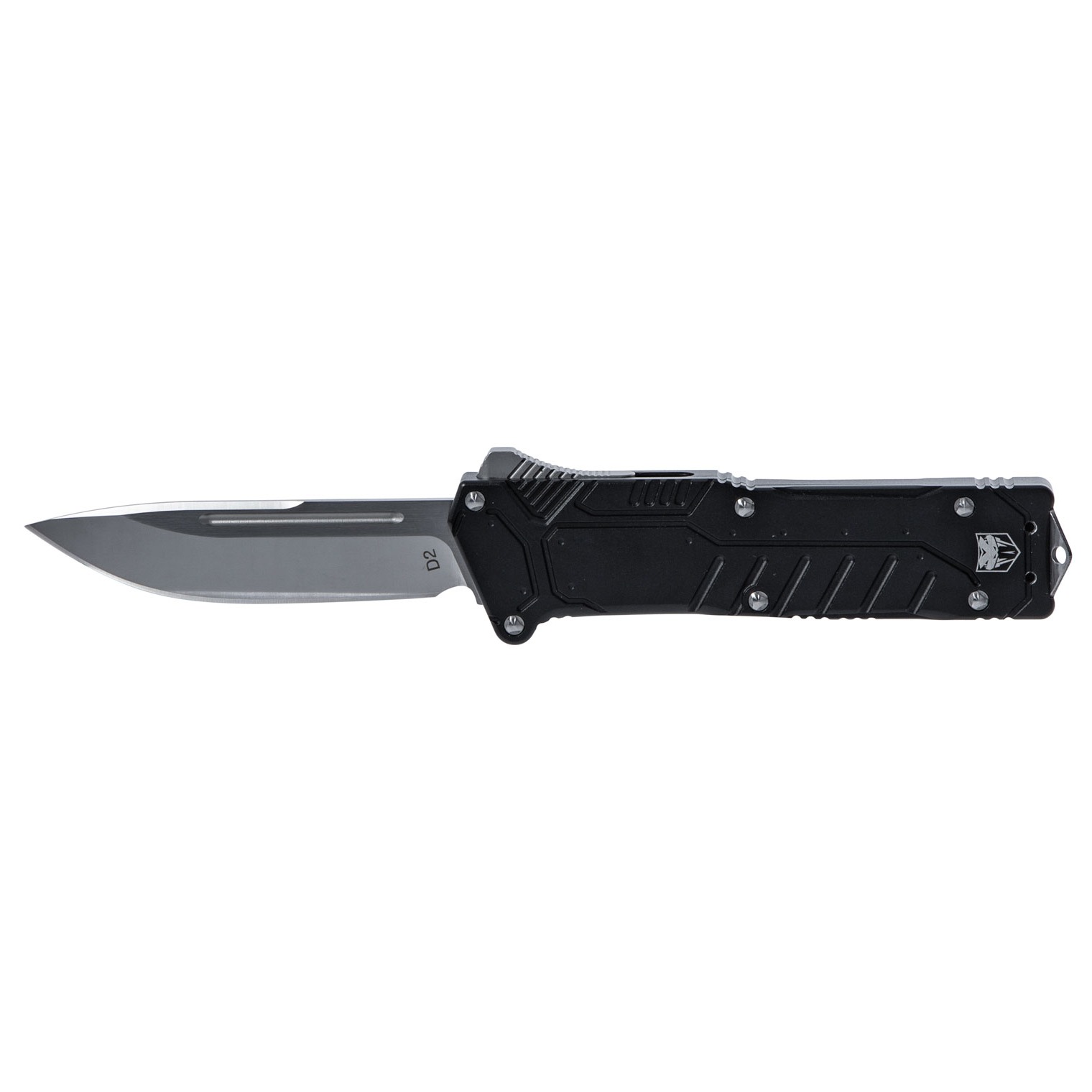 CobraTec Special Forces knife handle is made of T-6061 aircraft aluminum and comes with a D2 steel drop-not serrated blade. Very fast action, out the front knife (OTF). The knife features a pocket clip, glass breaker, nylon sheath and waterproof case.
