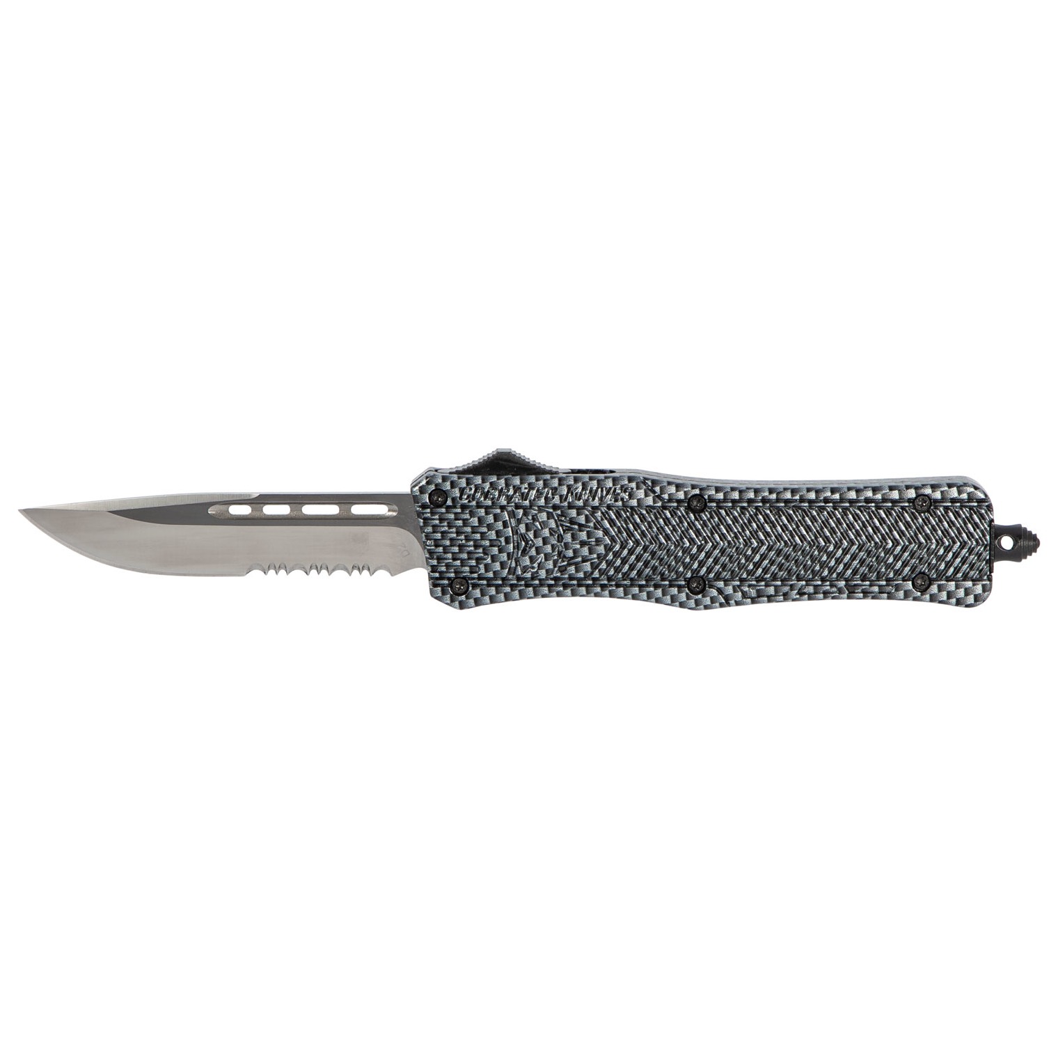 CobraTec Knives MSCFTK1MDS CTK-1 Medium 3” OTF Drop Point Part Serrated D2 Steel Blade/ Carbon Fiber Aluminum Handle Features Glass Breaker Includes Pocket Clip
