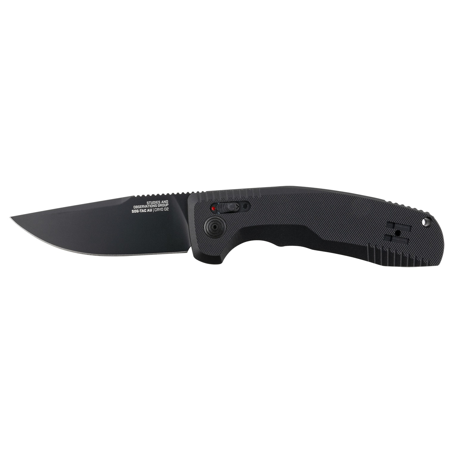With a textured aluminum handle and CRYO D2 blade, SOG-TAC AU is a fast-opening folding knife that springs to action with either hand and stays open with exceptional lock-up strength thanks to SOG’s advanced AU-XR Lock. An American-made switchblade, it’s a muscular go-to and back-up tool for military, first responders and defensive carry users who will appreciate the reliable double-action Safety. Includes pocket clip.
