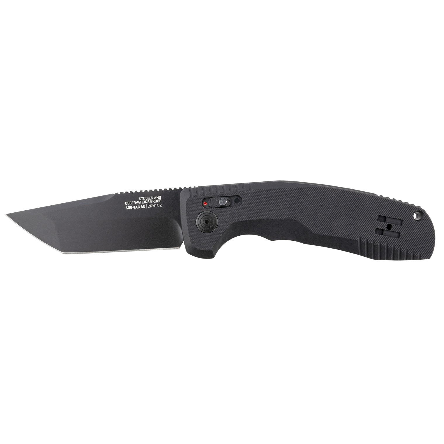 S.O.G SOG15380357 SOG-TAC Auto 3.43” Folding Tanto Plain Black TiNi Cryo D2 Steel Blade Black Micro-Textured Anodized Aluminum Handle Includes Pocket Clip