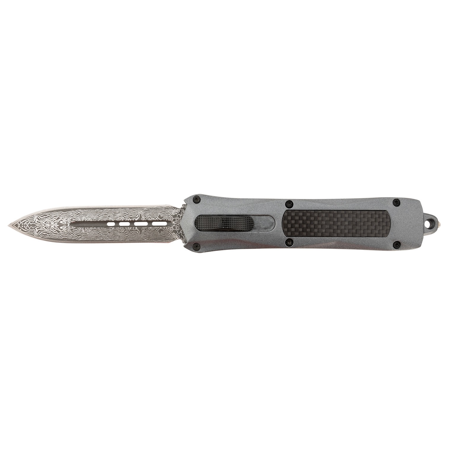 Steel River Knives A163BDD Spartan 3.50” OTF Dagger Plain Damascus 440C SS Blade/Gray w/Carbon Fiber Inlay Aluminum Zinc Alloy Handle