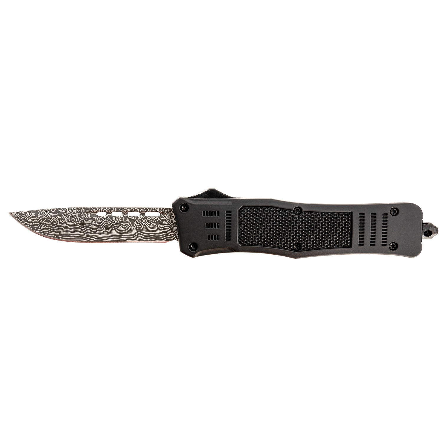 Steel River Knives T618BDDP Spartan Medium 3.25” Drop Point Plain Laser Etched Damascus 440C SS Blade/4.50” Black Aluminum Zinc Alloy Handle