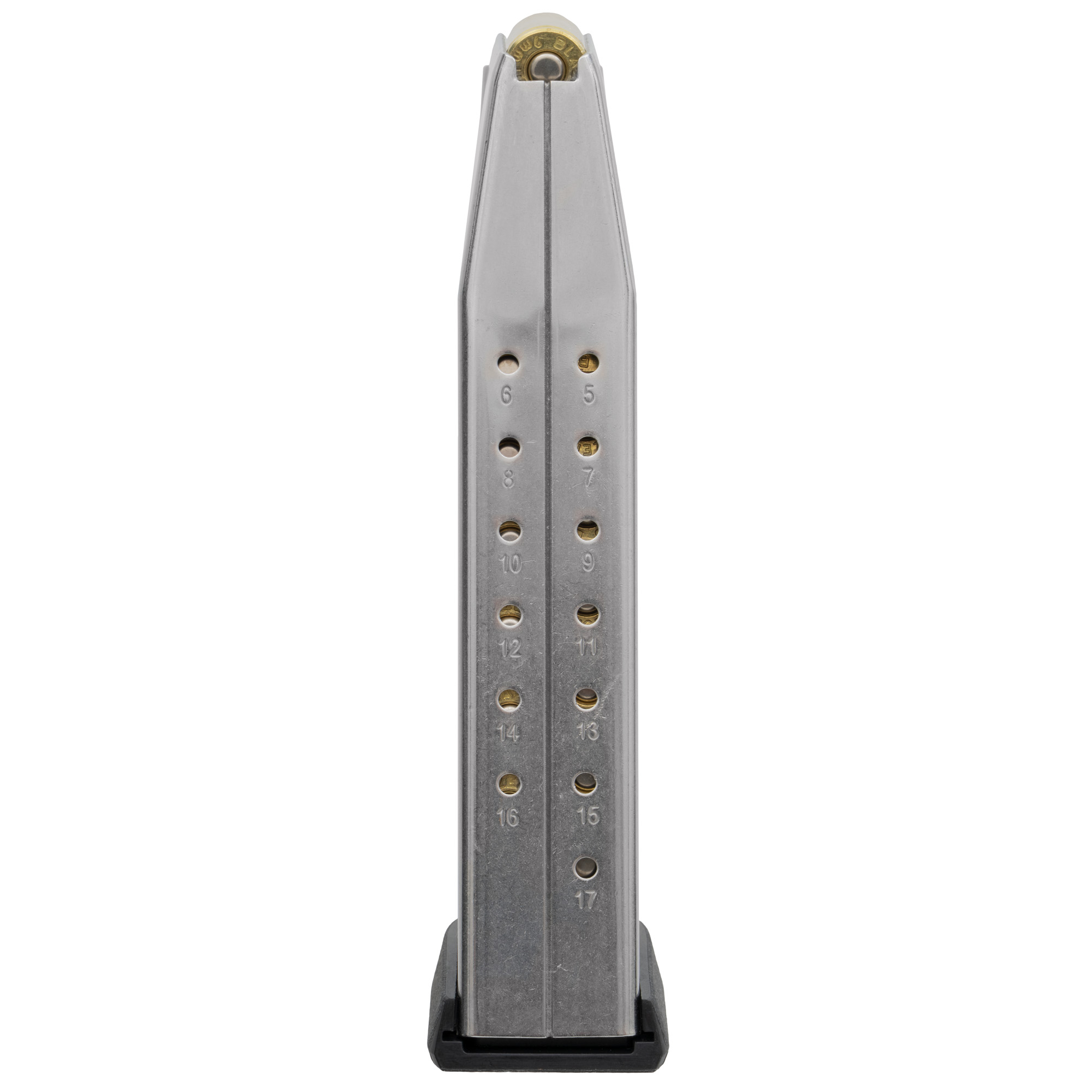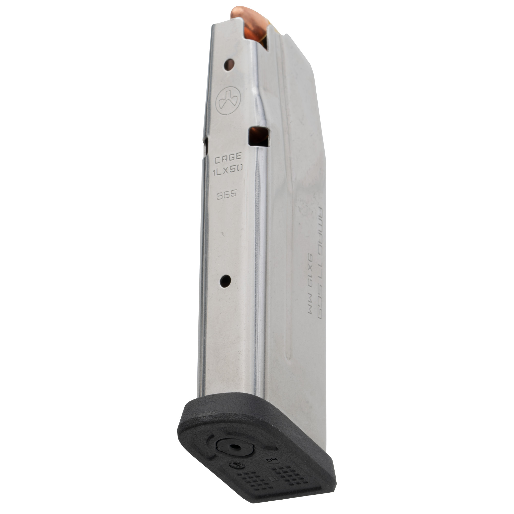 This AMAG 17 SG9 SIG P365 is a 17-round 9mm handgun magazine specifically for P365 pistols featuring a stainless-steel body with polymer sub-components. Magpul AMAGs come with many of the standard proven features, including a high-visibility, controlled-tilt follower, stainless-steel spring, flared floorplate that’s easily removable for cleaning and routine maintenance, paint-pen dot matrix for magazine marking, and capacity-indicator windows which begin at five (5) rounds, and continue along the spine of the magazine in one (1)-round increments.