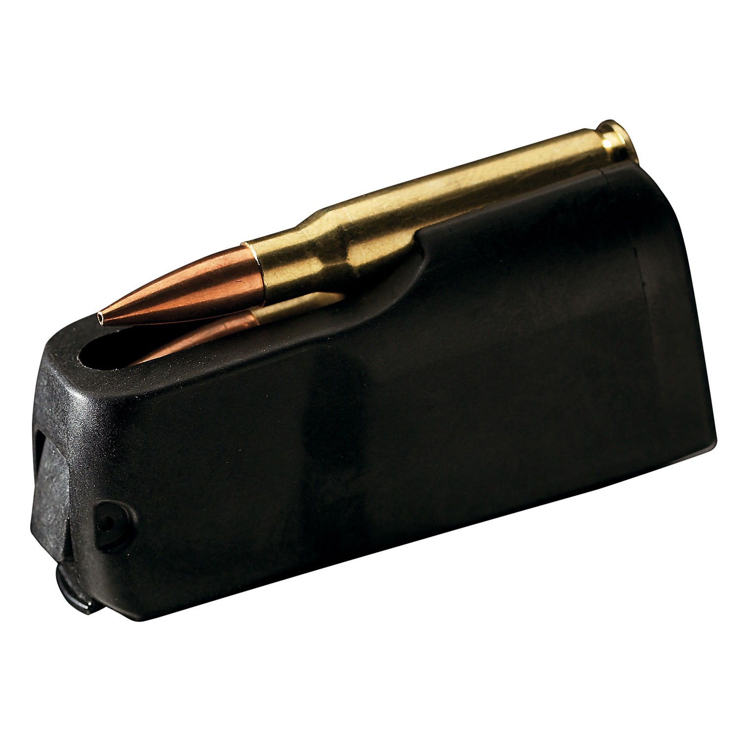 This magazine features a superior rotary design magazine is constructed from a durable lightweight polymer. It feeds cartridges directly in line with the bolt, instead of offset as with traditional leaf-spring magazines for a straight path right into the chamber. The magazine features ergonomic magazine-mounted release.