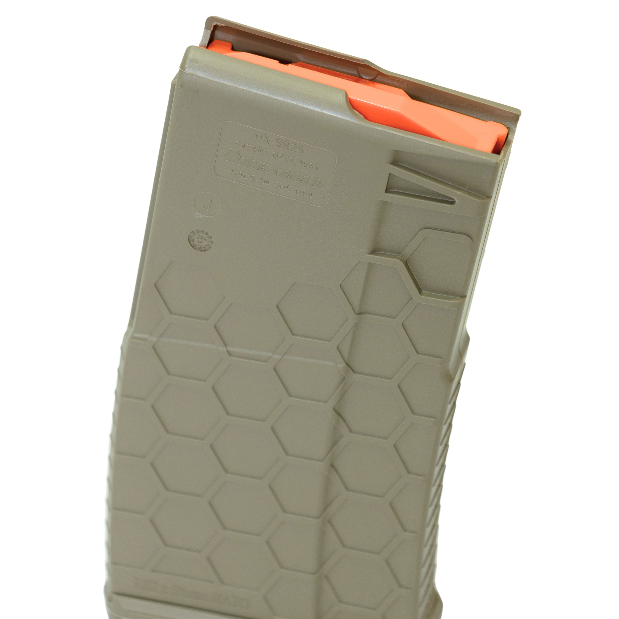 The Hexmag SR-25 magazine incorporates the industry’s most popular and functional accessories including Hexmag Grip Tape and SENTRY HexID Color Ammunition Identification System. *Note- not compatible with Armalite “B” Series AR-10 rifles.