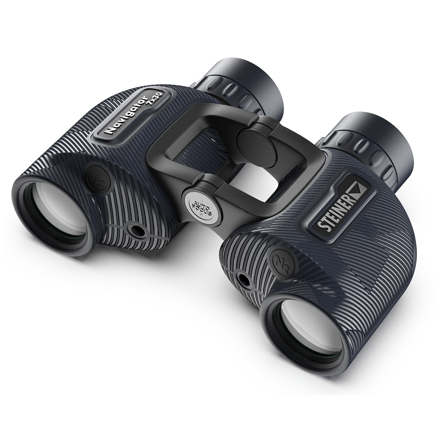 The Navigator Binoculars take Steiner’s popular marine series to the next generation with innovative product features. New open-bridge design enhances handling, alone with a texture body for a sure grip in any weather. Features an Open-Bridge-System that makes handling on deck much easier. In addition, the binoculars can be easily grabbed and held with one hand to always ensure a safe navigation; Steiner Auto-Focus always delivers crystal-clear images in 3D brilliance from 20m to infinity - without refocusing; field of view makes it easier to navigate safely when entering a harbor or in similar narrow environments such as when passing a bridge and Makrolon housing made of polycarbonate that withstands impacts up to 11G, floating prism bearings for shock absorption, water pressure proofness up to 5m, nitrogen pressure filling against fogging inside, temperature range from -20 degrees C to +70 degrees C. Includes case, cleaning cloth, neck strap, rain guard, objective covers and shoulder strap.