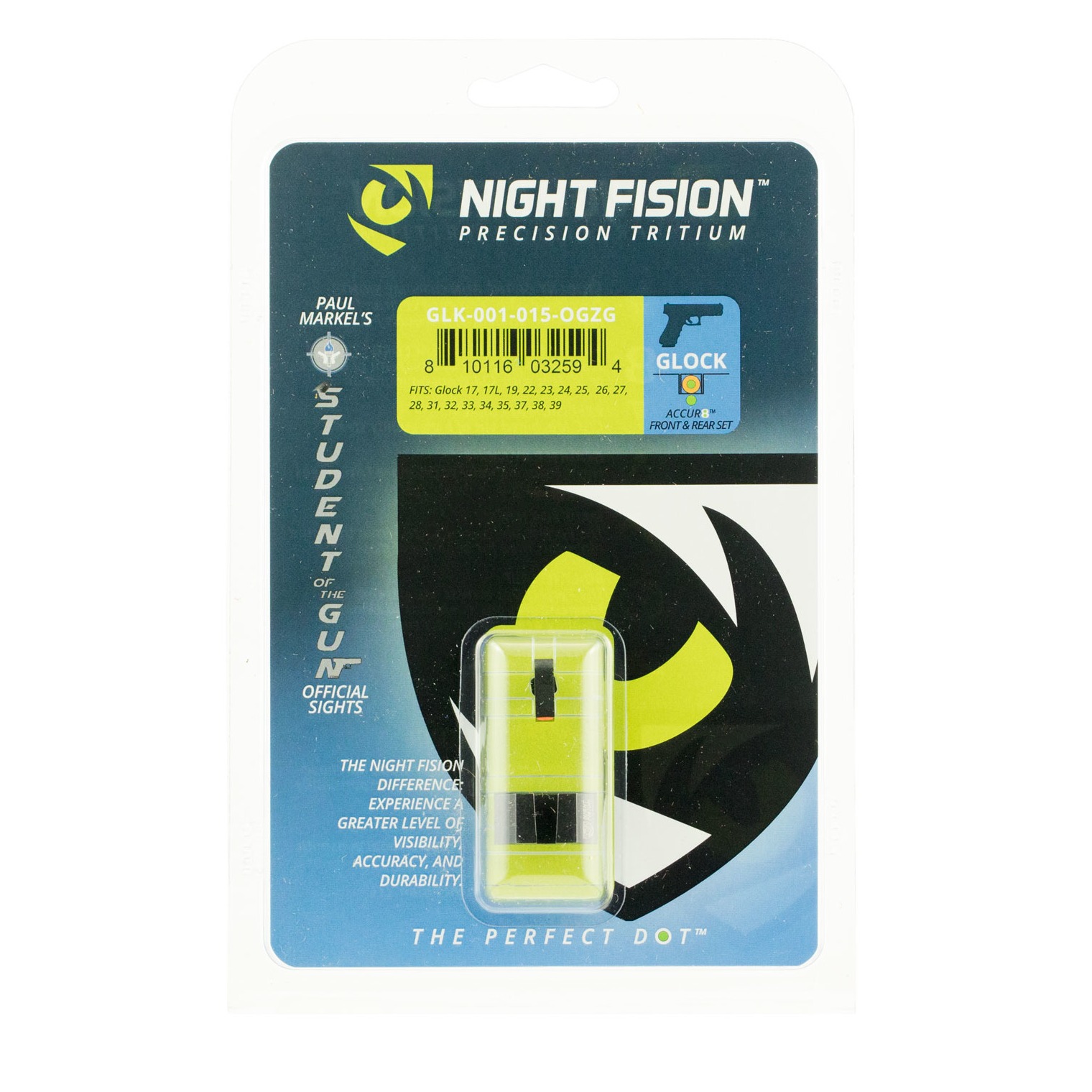 Night Fision GLK001015OGZ Student Of The Gun Accur8 For Glock Green Tritium Orange Outline Front Sight-Green Tritium Black Outline Rear Sight Glock 17/17L/19