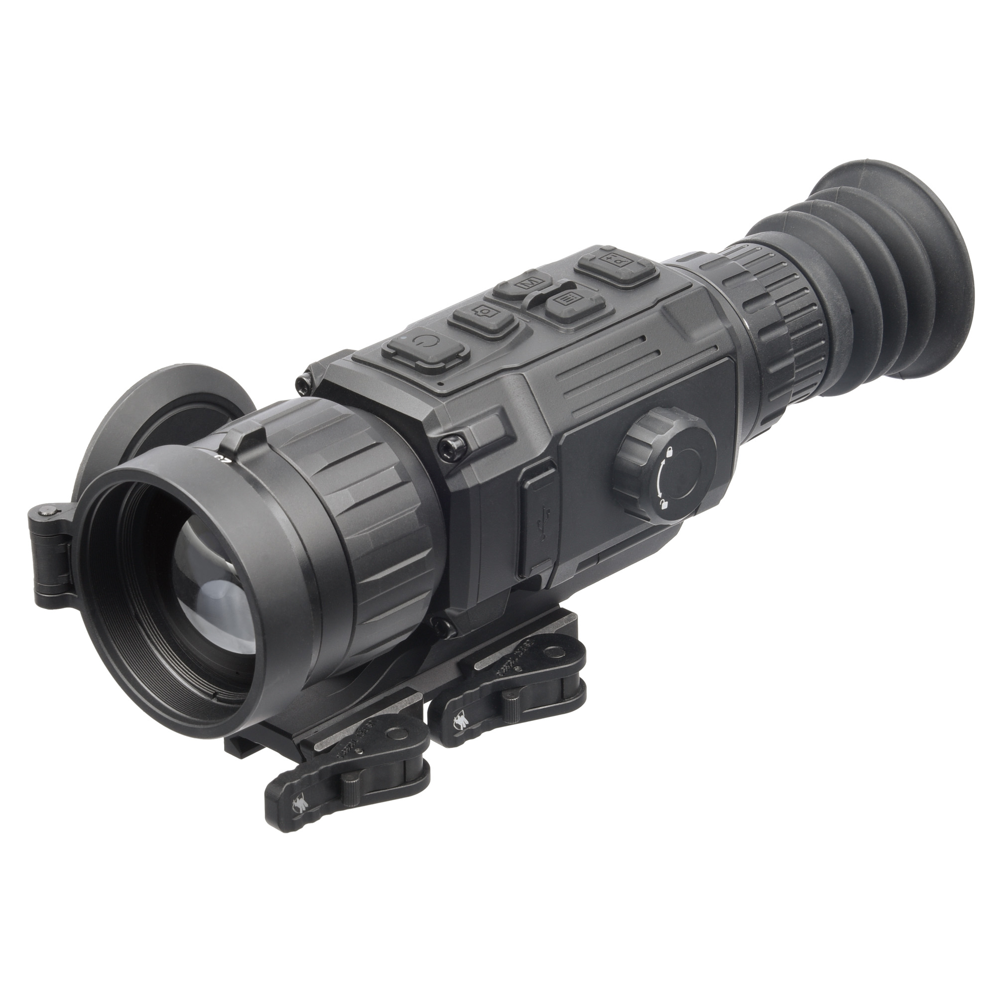 The Clarion night hunters can now use the benefits of a 25mm lens with a base magnification of 2x and a wider FOV then quickly switch to a 50mm lens with a base magnification of 4.5x and a narrower FOV to really make sure your positive identification and shot placement is on point. The design is also paired with the sensitive thermal sensor temperature rating in its class, coming it at sub-20. Featuring 384x288 12-micron thermal sensor; removable rechargeable battery, up to 11 hours of continuous battery life on a single charge; 10 internal reticle options, 5 different customizable zeroing profiles, 10 different brightness and contrast settings; wifi hotspot capability; built-in recording w/sound and image capture storage; AGM Connect app compatibility; 4 different reticle colors, 4 color palettes, 5 image sharpness settings. Includes American Defense mount which work well with both AR and bolt-action shooting platforms, two rechargeable batteries, battery charger, USB cable, lens cloth, owners manual and carrying case.